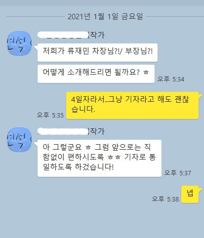 그래도 방송사 나름의 선의와 배려라고 해석했습니다. 저는 그냥 ‘기자’라고 해도 괜찮다는 답장을 했는데요. 작가도 나쁘지 않다는 듯 “직함 없이 편하도록, 기자로 통일하겠다”라고 했습니다. 두 말없이 ‘한 번에 OK’ 해서 다행입니다.