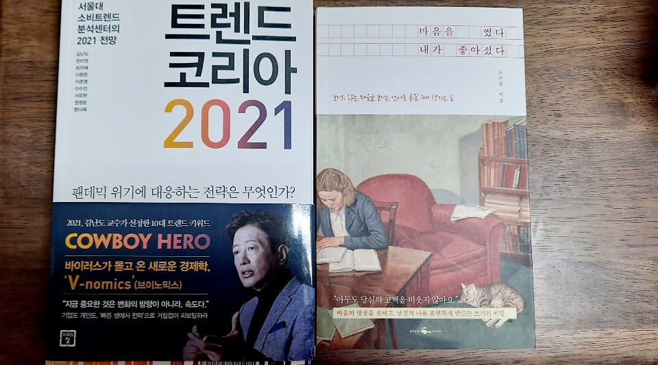 어젯밤, 제 페이스북에 누구나 한다는 새해 목표를 올렸습니다. #한 달에 책 두 권 읽기 #브런치 구독자 100명+조회수 50만 달성입니다. 한 달에 책 두 권 읽기 시작은 김난도 교수의 <트렌드 코리아 2021>과 소은성 작가의 <마음을 썼다 내가 좋아졌다>로 정했습니다.