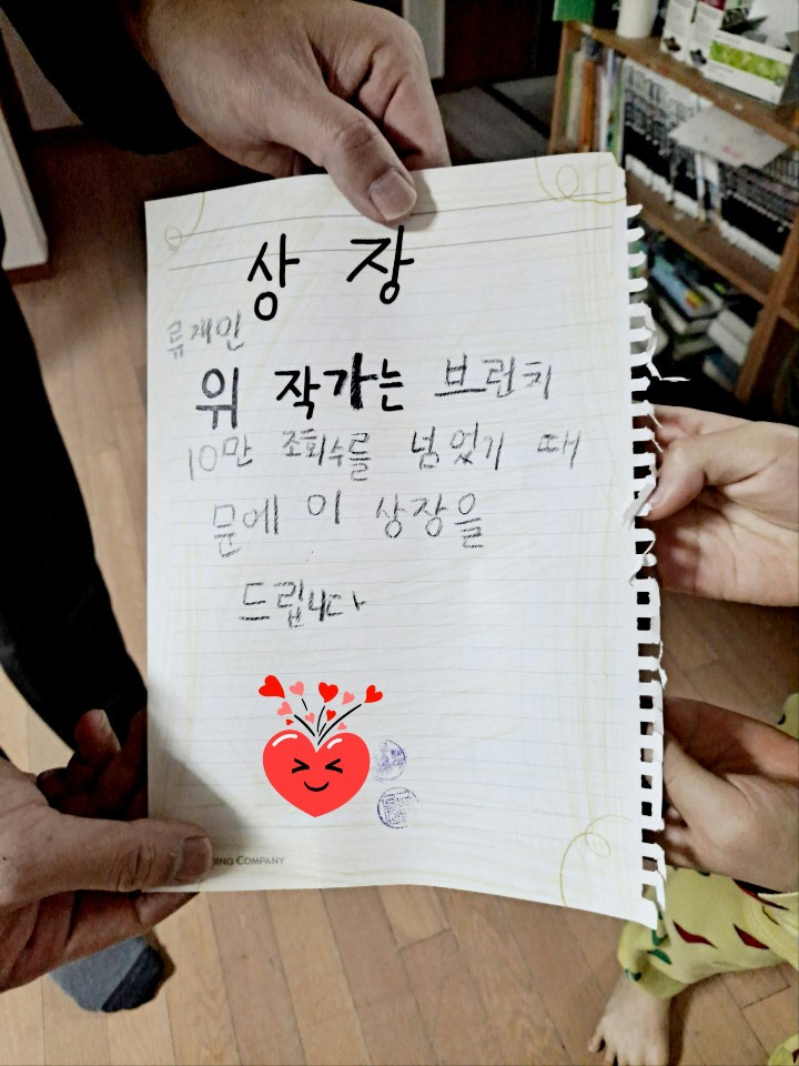 브런치 조회수 10만, 딸한테 상장을 받았다
