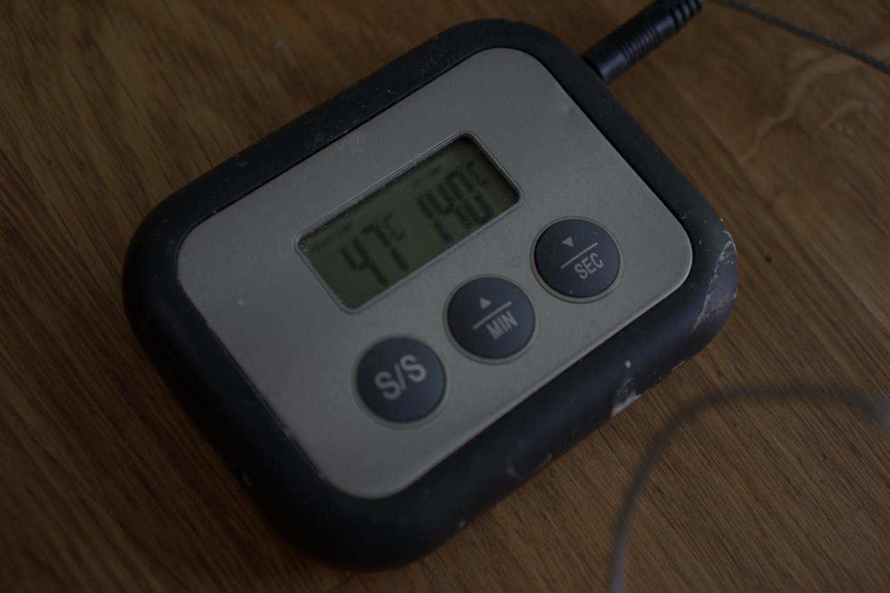 오븐이 따라 온도 편차가 나기도 하고 사이즈도 달라 조리 시간이 사람 따라 상이하다. 레시피네 나온 시간대로 구워도 막상 속을 열어보면 덜 익어있기도 한 경우가 생긴다. 이럴 때를 위해 오븐 온도계 그리고 케익 내부 온도를 측정할 수 있는 탐침형 조리 온도계가 있으면 좋다. 보통 음식은 다 익었을 때 특정 온도에 다다른다.