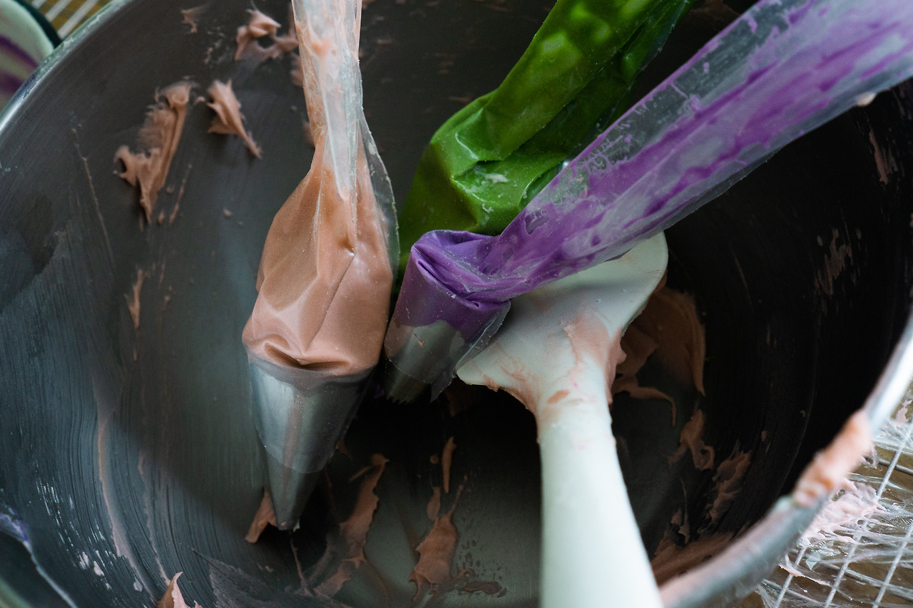 케익에 아이싱 베이스를 얹는 것에 익숙해졌다면 이제는 장식을 하는 것에도 도전해보자. 베이커리에서 보는 화려한 러플 장식에서 꽃, 별 모양의 깍지 짜기를 해보고 싶다면 페이스트리 백(짜는 주머니)과 다양한 크기와 모양의 깍지를 구비하면 좋다. 같은 페이스트리 백을 이용해 다양한 모양의 깍지 짜기를 할 수 있게 해주는 커플러도 크기별로 있으면 좋다.