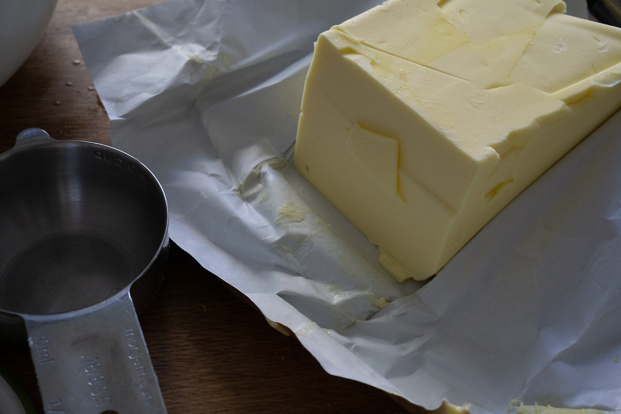 버터는 사용하기 최소 90분, 계절에 따라 3시간 이전에도 냉장고에서 꺼내 놓는다. 2센티 정도의 큐브로 커팅해 널찍한 접시에 펼쳐두면 더 빨리 실온이 된다. 손가락으로 누르면 부드럽게 자국이 남는 정도, 또는 18도~20도 정도의 온도면 된다. 액화가 된 버터는 사용할 수 없다. 즉, 온도를 높이기 위해 버터를 전자레인지에 돌리는 것도 안된다. 액화 상태가 되면 역시 믹스되지 않고 분리될 수 있다.