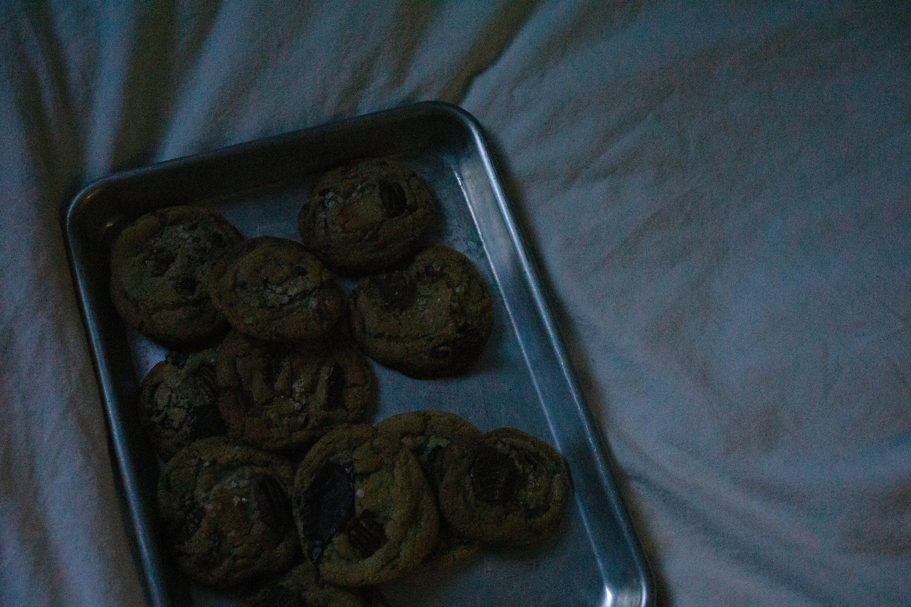 너트류에 관심이 없었지만, 그날따라 한 달에 2번 정도, 한 판씩 만드는 모닝 그라놀라 바에 사용하고 남은 피칸이 있었다. 적당히 잘라 쿠키 도우에 섞고, 오븐에 넣기 전에 통 피칸을 얹고 꾹 눌러 구워보았다. 굽는 냄새부터 다르다. 고소하고 기름진 피칸 냄새가 쿠키의 맛에 레이어를 더하고 섬세한 단맛과 짠맛을 증폭시켜준다. 물론 과도한 단맛을 잡아주는 역할도 한다. 쿠키 자체에 밀가루+설탕+버터 부분이 너무 많지 않도록 채워주기도 한다. 식감은 물론이고.