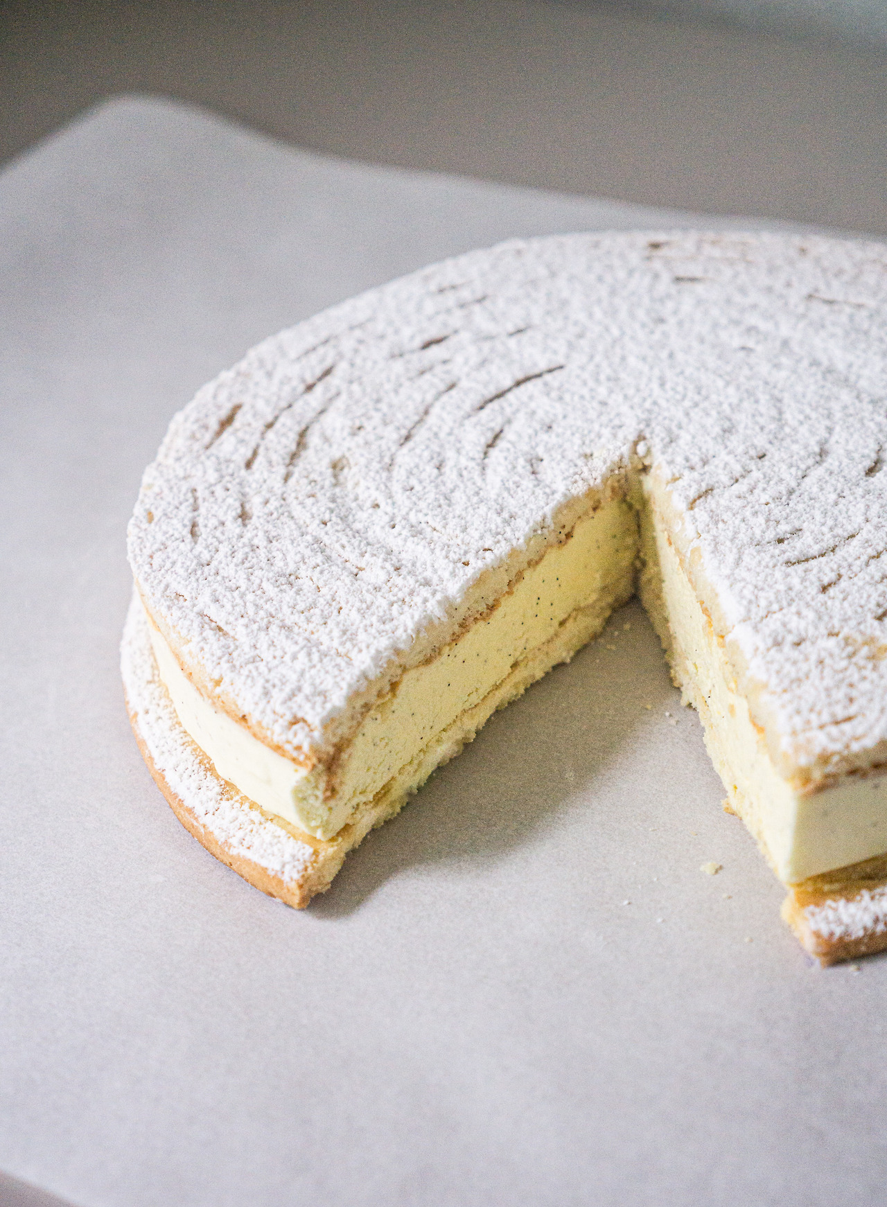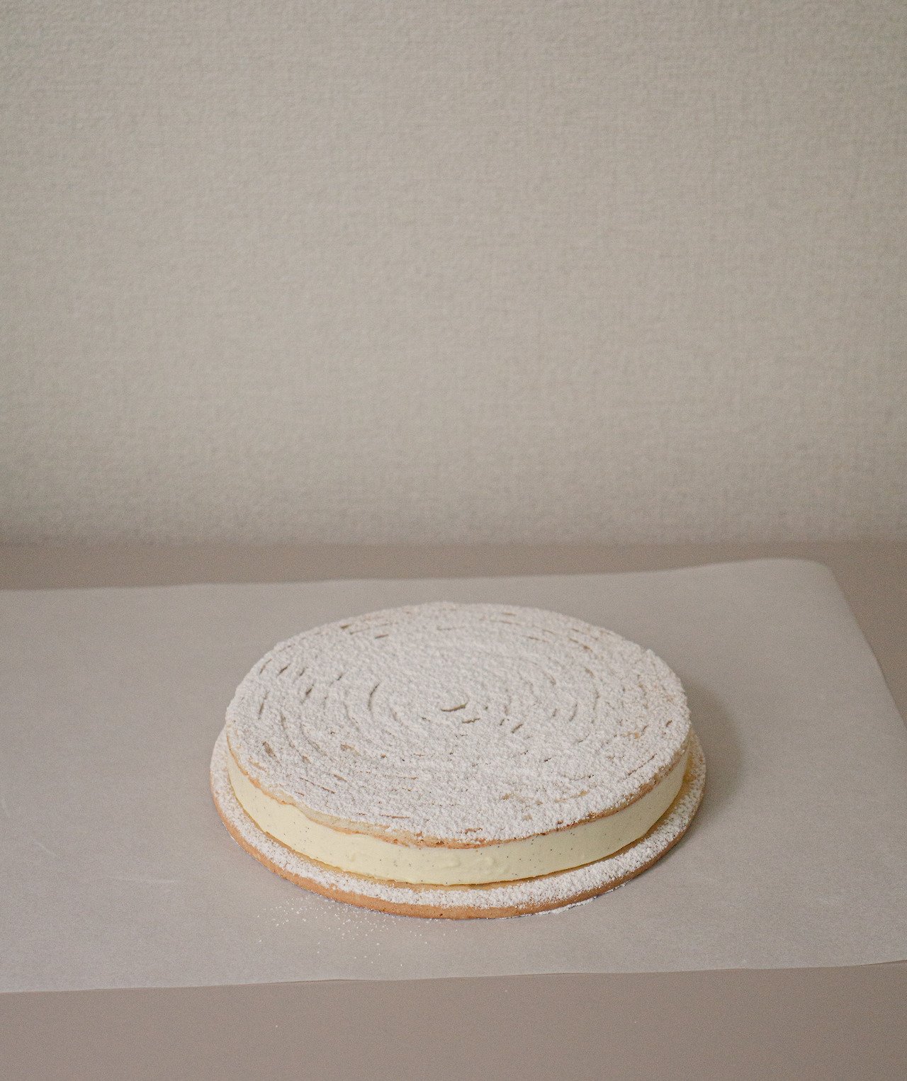 이 타르트를 만들며 가장 힘들었던, 아니 나도 차마 대비하지 못해 당황했던 부분은 공정 사이의 기다림이었다. 우선 파트 사블레를 만들고 그다음엔 아몬드 가루로 비스퀴를 만들어 타르트링으로 여분을 잘라낸 뒤, 크렘 앙글레즈를 만들어 젤라틴을 더한 것을 상온에서 식히고, 거기에 샹티한 생크림을 믹스해 바닐라 무스를 만들어 준비해놓은 비스퀴의 타르트링안에 올리고 다음날까지 냉동한다. 이전에 만들어 놓은 파트 사블레에 얹어 슈가 파우더까지 쳐서 완성하게 된다. 식히고 굳히는 과정은 굽고 익히는 것보다 새삼 훨씬 정적이면서 느리다. 굽고 끓이는 것, 달리 말해 적당히 태우고, 필요한 만큼 수분을 제거하는 이 공정들을 어찌 보면 좀 더 급하고 과격한 조리 방식인 것일까? 케이크를 굽는 것도 참 지루하고 길게 느껴질 때가 있는데 정말로 인내를 요하는 것은, 때론 굽는 과정이 아예 없을 수도 있는 이런 섬세한 디저트들이구나.