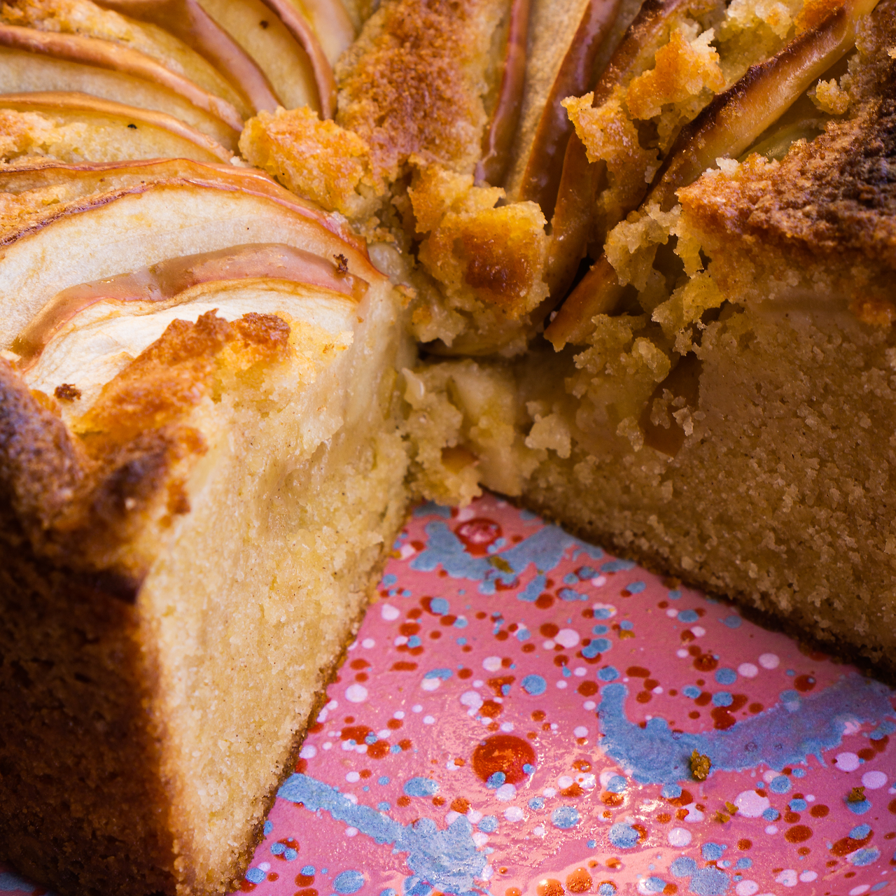 요즘은 나에게 부담 주지 않으려 나에게 익숙한 맛을 것 같은 것들을 만들어 보고자 애쓰고 있다. 종종 기이하거나 유머가 넘치거나 눈이 가는 케이크나 쿠키를 만들려고 했다면, 요즘은 나에게 먹이려고 만들고 싶은 것이 무엇인지 생각하곤 한다. 몇 주전 인스타그램에서 본 케이크가 있었다. 소박한 사과케이크였는데, 언뜻 보기에 레시피도 정말 간단해서 베이킹을 처음 하는 사람도 쉽게 할 수 있어 보였다. 주말이 되면 만들어야지 하다 3주가 지나서야 겨우 만들어 보게 된 이 케이크는 소박하지만 놀랄 만치 마음이 편안하고, 익숙하면서도 좋은 맛이었다. 동등한 비율로 밀가루, 설탕, 버터를 섞고 달걀도 넣은 뒤 반죽을 담나 마음대로 썰은 사과는 에쁘게 담아 구우면 끝. 나는 거기에 마법의 향신료, 시나몬을 추가했다. 가을이기도 하고.