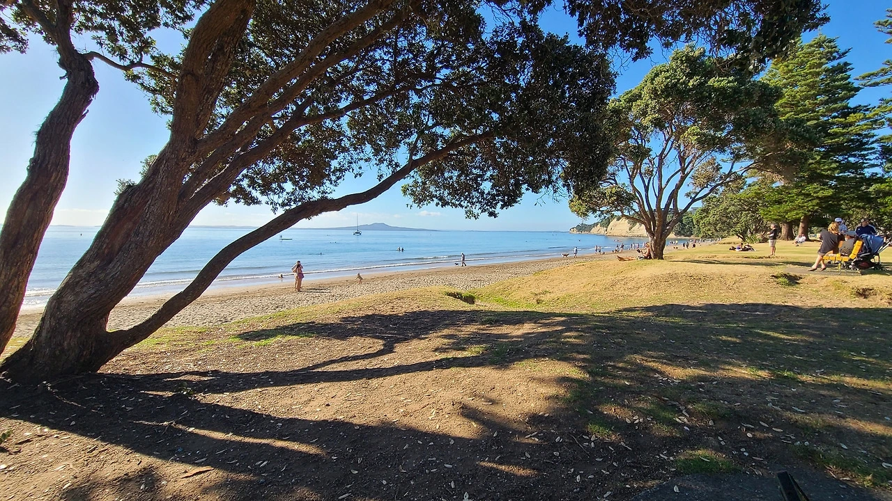 아론의 형님 처가 가족들과 작별 인사를 나눈 후 아침 식사를 위해 아론과 인근의 브라운스 베이로 향했다. 아름다운 해변을 낀 휴양지 분위기가 물씬 나는 자그마한 마을이다. 카페에서 샌드위치로 가벼운 아침 식사를 마친 후 내가 내겠다고 해도 아론이 계산을 자처한다. 한국의 계산대 앞에 간혹 벌어지는 실랑이를 여기에서 보게 될 줄이야! 해변으로 나서자 이른 아침인데도 햇볕이 정말 강하다. 모자가 뉴질랜드 초등학교 등교 필수품이란 말이 실감 나는 날씨다. 내리쬐는 햇볕, 적당히 촉촉한 습도 그리고 미세먼지 없는 상쾌한 공기로 겨울에 떠난 여행자를 반겨주는 브라운스베이 비치다. 성수기 여름 주말인데도 한적한 해변 풍경이 일품이다.