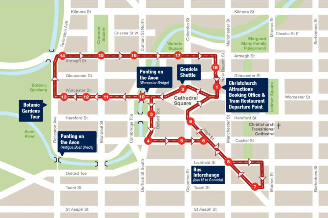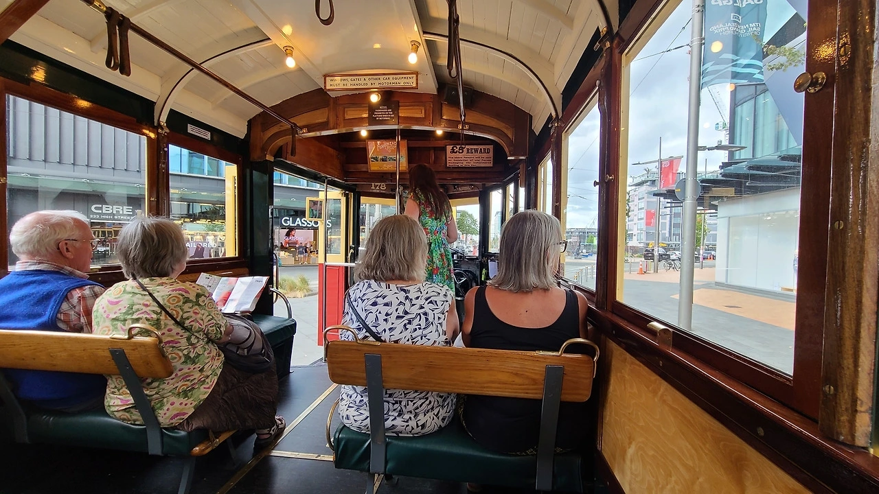 크라이스트처치에 왔으니 다리도 쉴 겸 트램은 타봐야겠지. 시티센터를 한 바퀴 도는 코스다. 나무로 만들어진 차창과 내부 인테리어가 옛 정취를 물씬 풍긴다. 우연인지 승객도 모두 나이가 지긋한 노인들이다. 차장이 중간중간 계속 설명을 하지만 잘 알아듣기는 힘들었다. 창밖으로는 한창 복구가 진행 중인 건물도 다수 보였다. 코니는 방치된 한 노란 빌딩을 가리키며 자신이 결혼식을 올렸던 호텔인데 지진에 파괴된 후 재건을 포기했다고 한다. 크라이스트처치 주민에게 2011년 대지진은 아직도 현재진행형이었다.