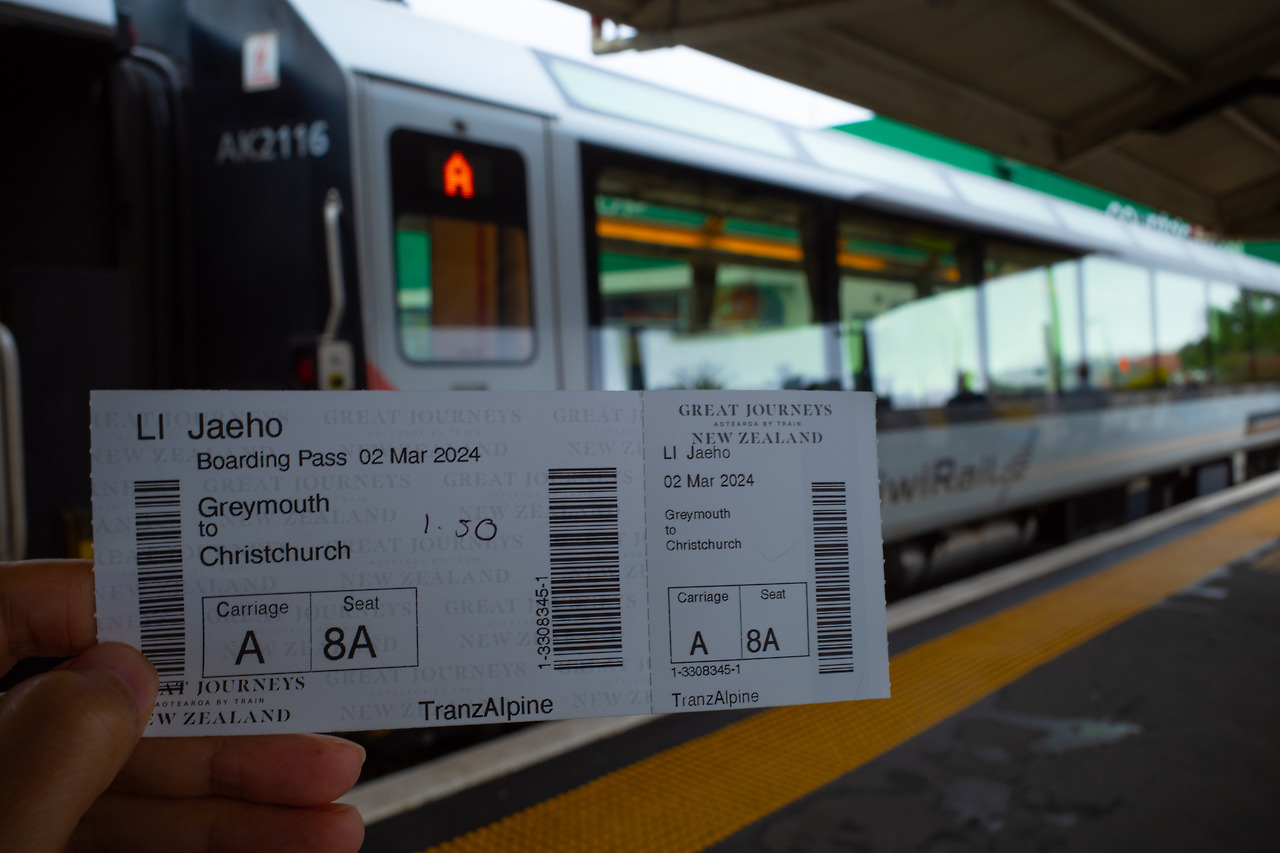 이제 그레이마우스 역이야. 쉐인이 프린트해 준 예매확인서를 내밀고 승차권으로 바꿨지. 한가하던 기차역이 떠들썩해지며 여행객으로 붐비기 시작했어. 캐리어는 코니가 차에 싣고 갔기에 단촐한 차림의 승객은 나뿐인 것 같아. 여행객은 다들 캐리어가 있었서 꼭 비행기 타는 기분이야. 캐리어를 싣는 열차 화물칸이 따로 있어. 짐을 실어주는 사람도 있고.