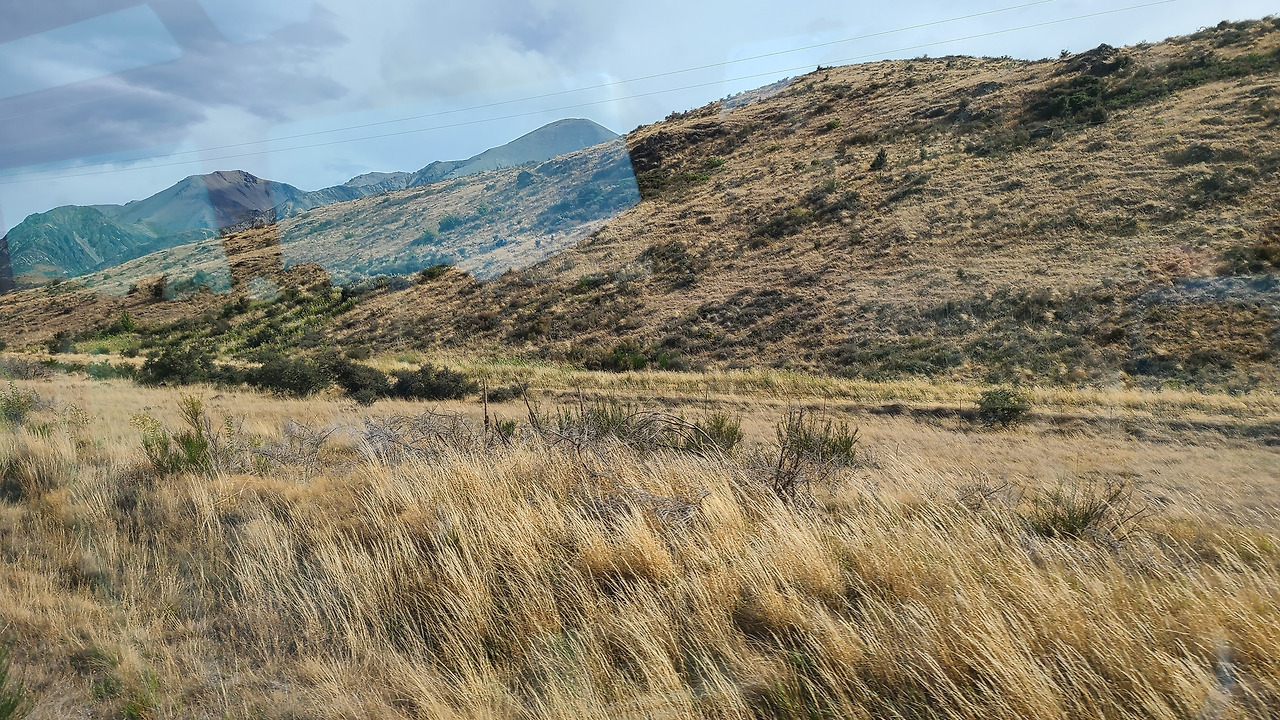 열차가 오티라 터널을 나오자마자 비 내리던 우중충하던 날씨가 쨍한 하늘로 바뀐 거야. 마치 예전에 영화관에서 건물 밖으로 나왔을 때처럼 눈이 부셔. 경치가 바뀌었어. 누가 먼저랄 것도 없이 승객들이 다 함께 탄성을 지르며 자리에서 일어나더라니까. 뉴질랜드 남섬을 남북으로 가로지르는 서던알프스 산맥 때문에 동서로 풍경과 기후가 다르다는 걸 실감했어. 크라이스트처지 근교에서 왜 멀리 보이는 저 산이 누렇지?라고 코니에게 처음 물었을 때 코니가 그랬지. 너무 당연하다는 듯 "여름이잖아" 이제 웨스트코스트의 푸른 풍경은 자취를 감추고 황량한 풍경의 연속이야. 생명력이 가득한 푸른 산 보다 이런 황량한 풍경에 더 눈길이 가는 것은 왜일까. 모두 창에서 눈을 떼지 못하는 걸 보면 나만 그런 게 아니다.