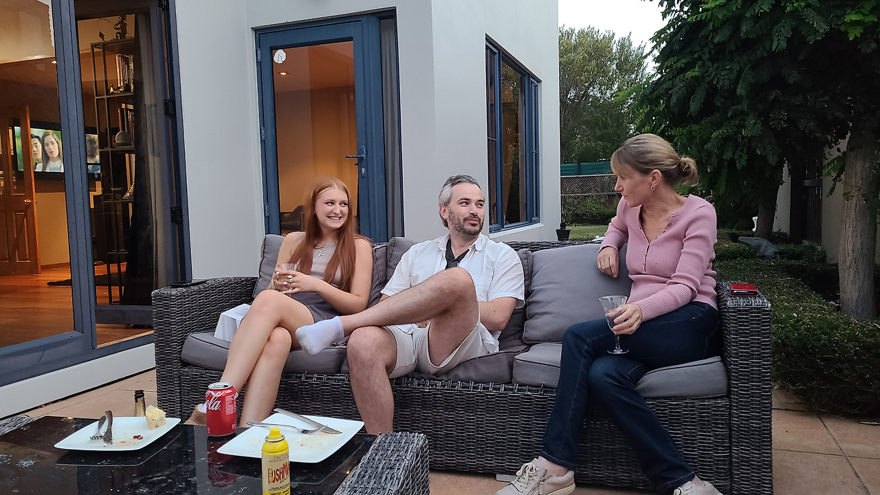 코니는 내가 집에 도착하는 시간에 맞춰 파티를 준비했어. 딸 베르티와 남친 딜런, 옆집 바바라도 불러서, 다른 쌍둥이 딸 라일라는 학교 때문에 더니든에 있어 함께 못 했지.