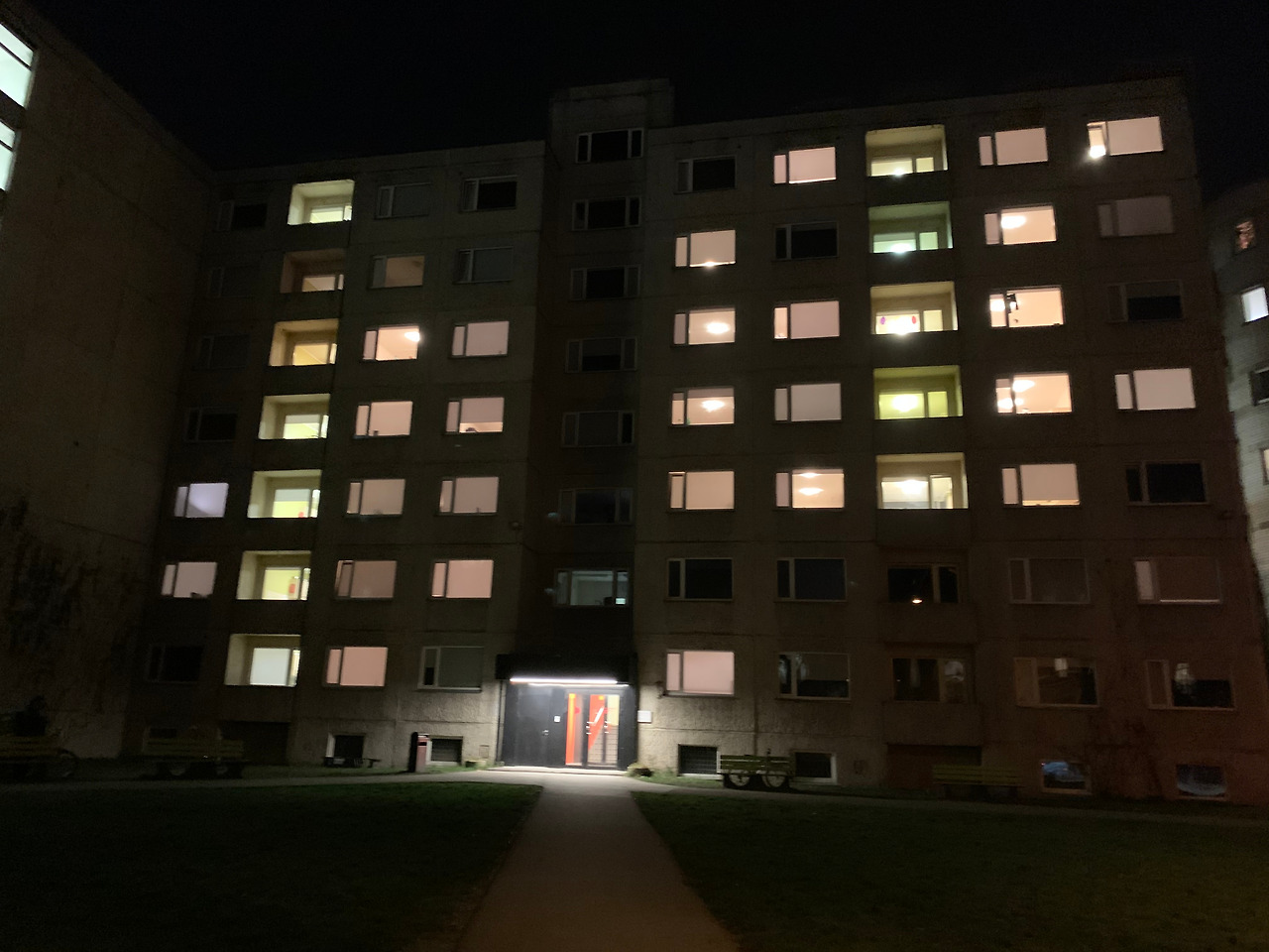 마트에서 장을 보고 나서는 6개월간 머물렀던 Karu 기숙사도 찾아가 봤다. 한때는 하루에도 몇 번씩 들락날락했지만 이제는 더 이상 들어갈 수 없는 곳이 되어 있었다. 투박한 외관의 회색빛 건물이 어둠 속에 유난히 거대해 보였다.