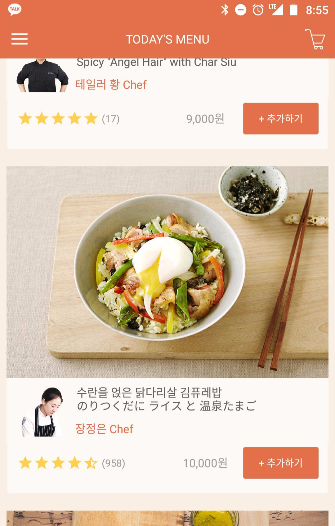 다른 종류의 상품을 판매하거나 상품의 양이 꽤나 많았다면 사용자가 조금 부담을 느꼈을 법한 배치이지만 워낙 제한된 양의 상품이 진열되기 때문에 매장 영역의 입장에서 시도해볼만한 디자인이기도 하고 '셰프'라는 존재가 서비스의 Key Identity 이기 때문에 의미있는 구성이라는 생각이 들었다.