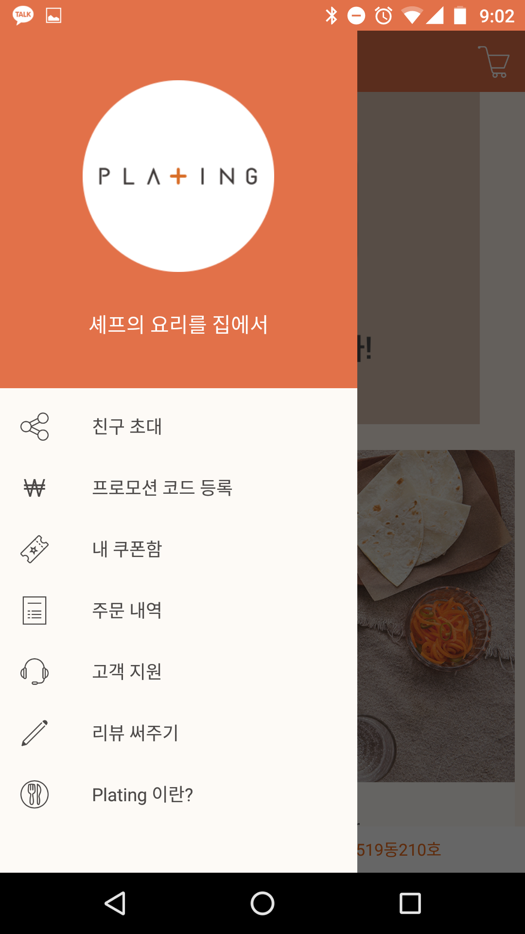 Drawer 메뉴영역을 열면 이 서비스의 아이덴티티가 나온다. '셰프의 요리를 집에서'