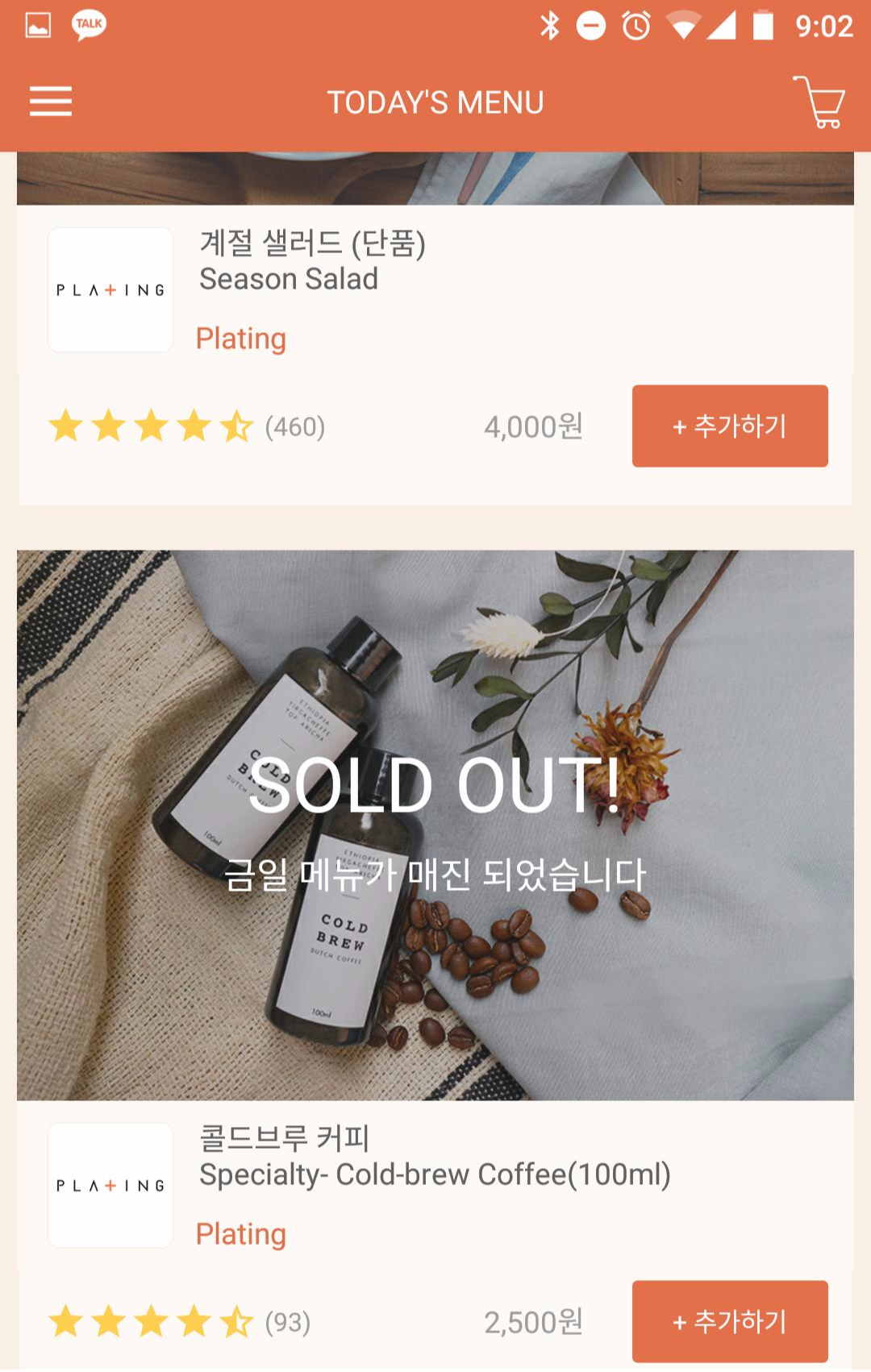 특히 음료 제품은 메인 음식을 시켜야 함께 주문이 가능한데 콜드브루커피의 물량이 많지 않아서 그런지 항상 가장 먼저 품절이 되는편이다. 아마 메인 음식을 시켜야 함께 주문이 가능하다는 제약을 없애버리면 더 빨리 커피가 품절되지 않을까 싶다. 그런 면에서 일반 음식이 아닌 커피가 가장 빨리 품절이 되는 것은 플레이팅 입장에서 많이 아쉬운 일일 것이다. 객단가가 높은 상품이 빨리 품절이 되어야 몰의 입장에서는 행복하기 때문이다.