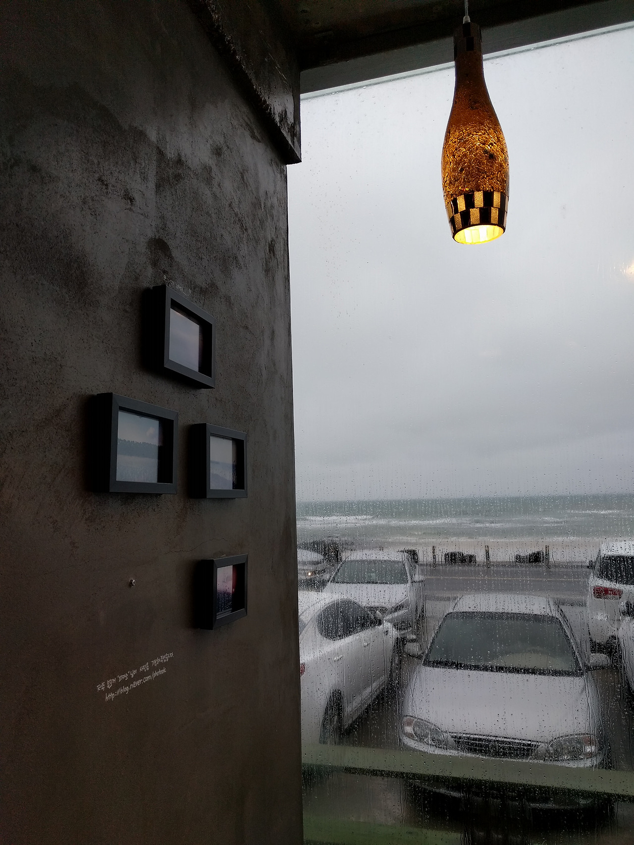 바다 구경을 쉽게 놓치기 싫어서 근처 카페로 이동하였다. 마침 비바람이 강해졌다. 애월, 월정 쪽 방면으로는 온통 멋진 카페들이 줄을 서 있다. 창가쪽 자리를 맡는 것이 쉽지 않다.