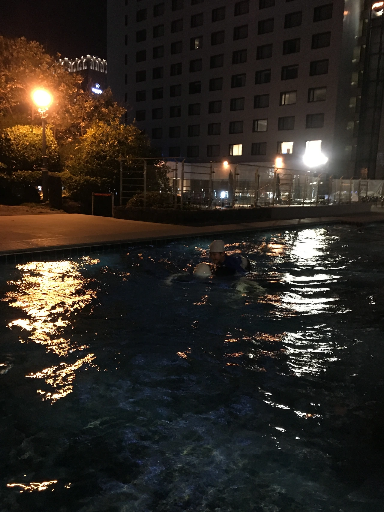 호텔에 뻗기 전 후로 이틀에 걸쳐 연달아 수영장에 갔다. 특히 둘째날에는 비가 살짝 보슬보슬 왔지만 아이들을 막을 수는 없었다. 가을이라 물미끄럼틀은 못타게 막아놓았고 자쿠지는 따뜻했다.
