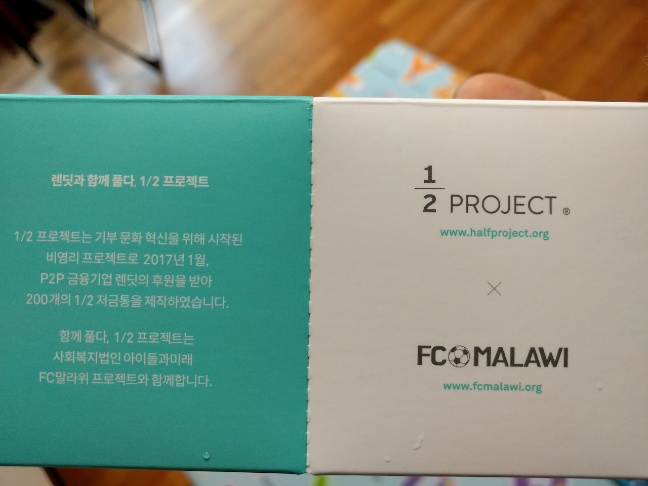 어릴적부터 자신의 것을 주변과 나누를 경험을 하는 것은 앞으로 남은 인생을 살아가는 데 있어서 매우 중요한 경험이라고 생각한다. 그리고 그 경험을 우리아이들에게 육성해 주라는 의미에서 렌딧이 함께하는 1/2프로젝트의 저금통을 선물로 받았다.