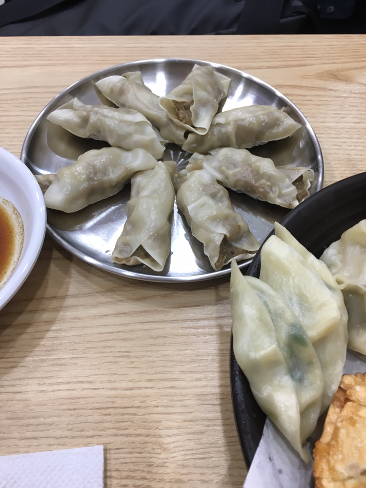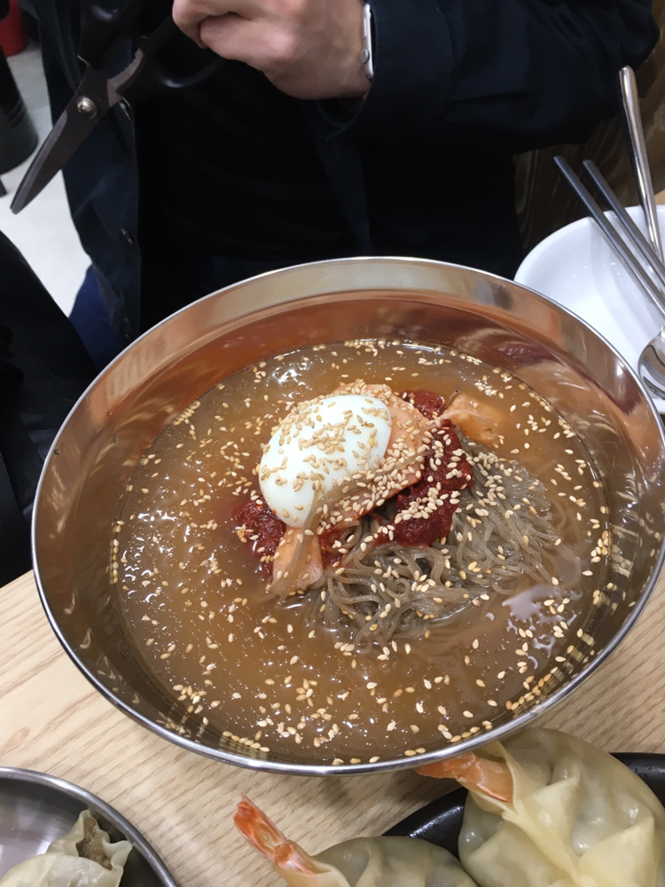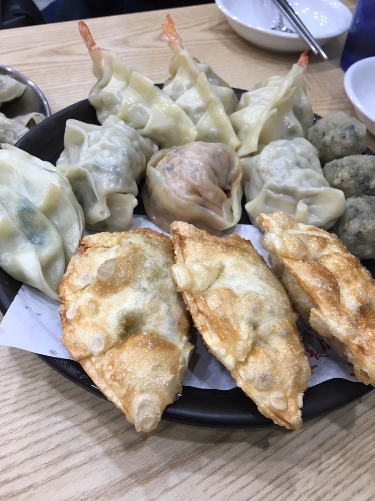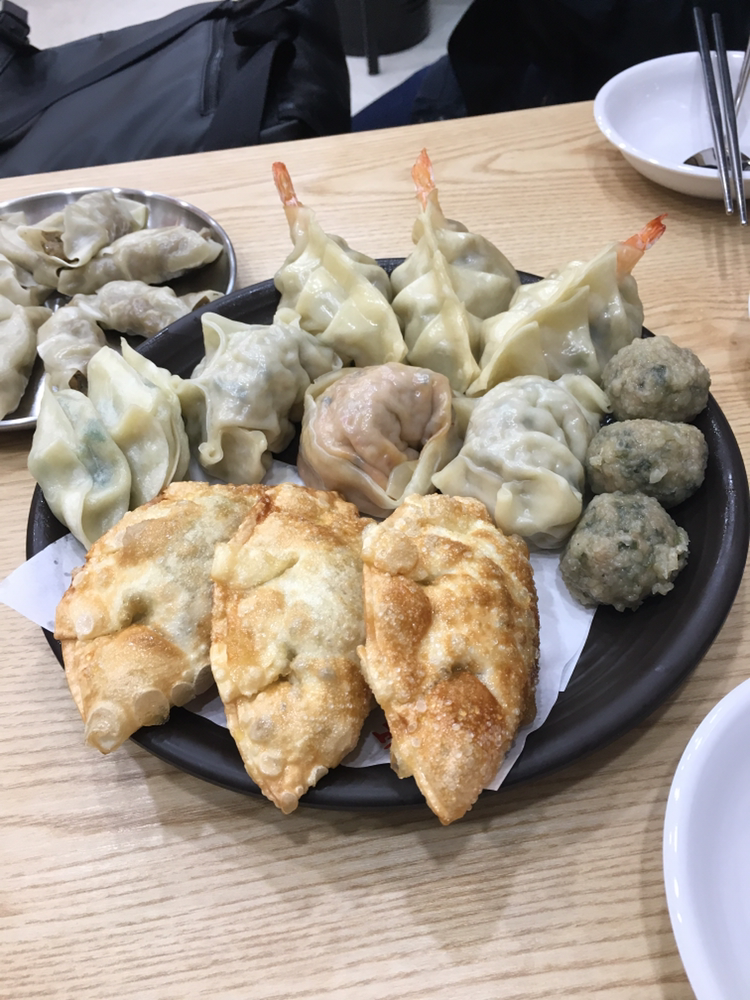 이제 주문이 들어간다. 배가 고팠던 우리 3인방은 모듬만두, 갈비만두, 신국물만두 그리고 피냉면을 시켰다. 일단 모든만두는 정말 다양한 만두의 매력을 보여주었다. 특히 새우가 속으로 들어가 있는 만두는 겉모양과 식감에서 모두 아주 매력적이었다. 갈비만두는 워낙 유명한듯 하고 신국물만두는 마치 라볶이와 같은 매력을 보여주었다. 마지막으로 피냉면은 자칫 느끼해질 수 있는 입맛을 딱 잡아 주었다.