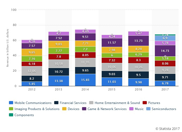*https://www.statista.com/statistics/297533/sony-sales-worldwide-by-business-segment/