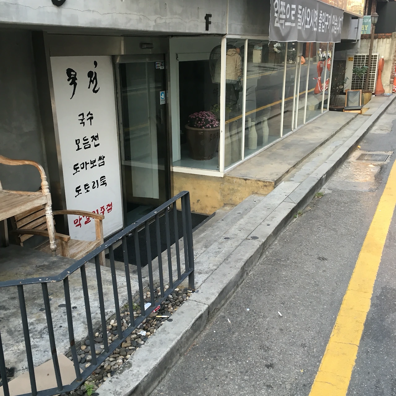 그 첫번째는 반지하 형태의 상점들이다. 건축상의 층간 규제가 있어서 그런지 모르겠으나 압구정 로데오 거리에는 유난히 반지하의 구조를 가지고 있는 건물이 많다. 여기에서 말하는 반지하는 일반적으로 생각하는 매우 허름한 형태의 반지하를 말하는 건 아니다. 인테리어가 잘되어 있는 식당이나 값비싼 상품을 판매하고 있는 많은 매장들이 반지하의 구조안에 들어가 있다. 결국 압구정에서 반지하는 1층과 크게 다르지 않다. 이런 모습도 압구정만의 풍경인듯하다.