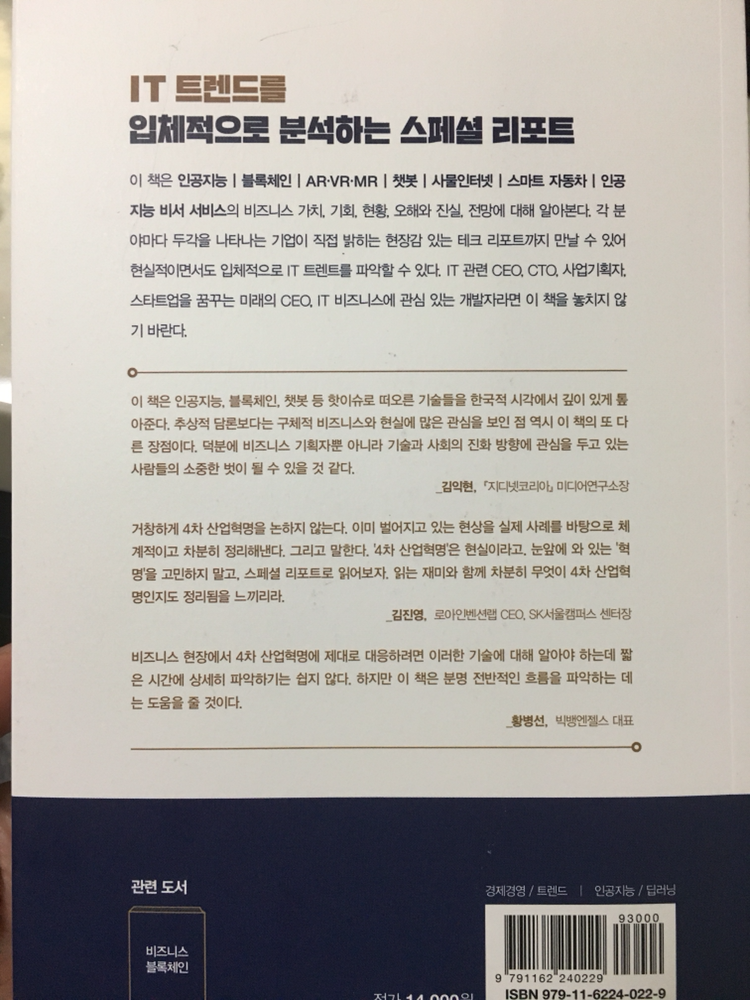 이 책을 다 읽는데 나는 2시간이 채 걸리지 않은 듯 하지만 (익숙한 부분이 많아서 빨리 읽혀졌다.) 그 2시간이 차분하게 2017년과 2018년의 IT를 다시 한 번 생각해 보기에는 꽤 값진 시간이 아니었을까 싶다. 특히 챗봇과 간은 영역의 경우는 최근 커머스의 분야와 밀접하게 연결되고 있어서 많은 공부가 필요한 부분이기도 했다.