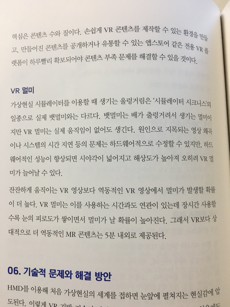 'VR멀미'와 같은 부분을 설명해 주는 부분은 특히 필요하고 이 책의 장점을 살려주는 부분이라고 생각하였다.