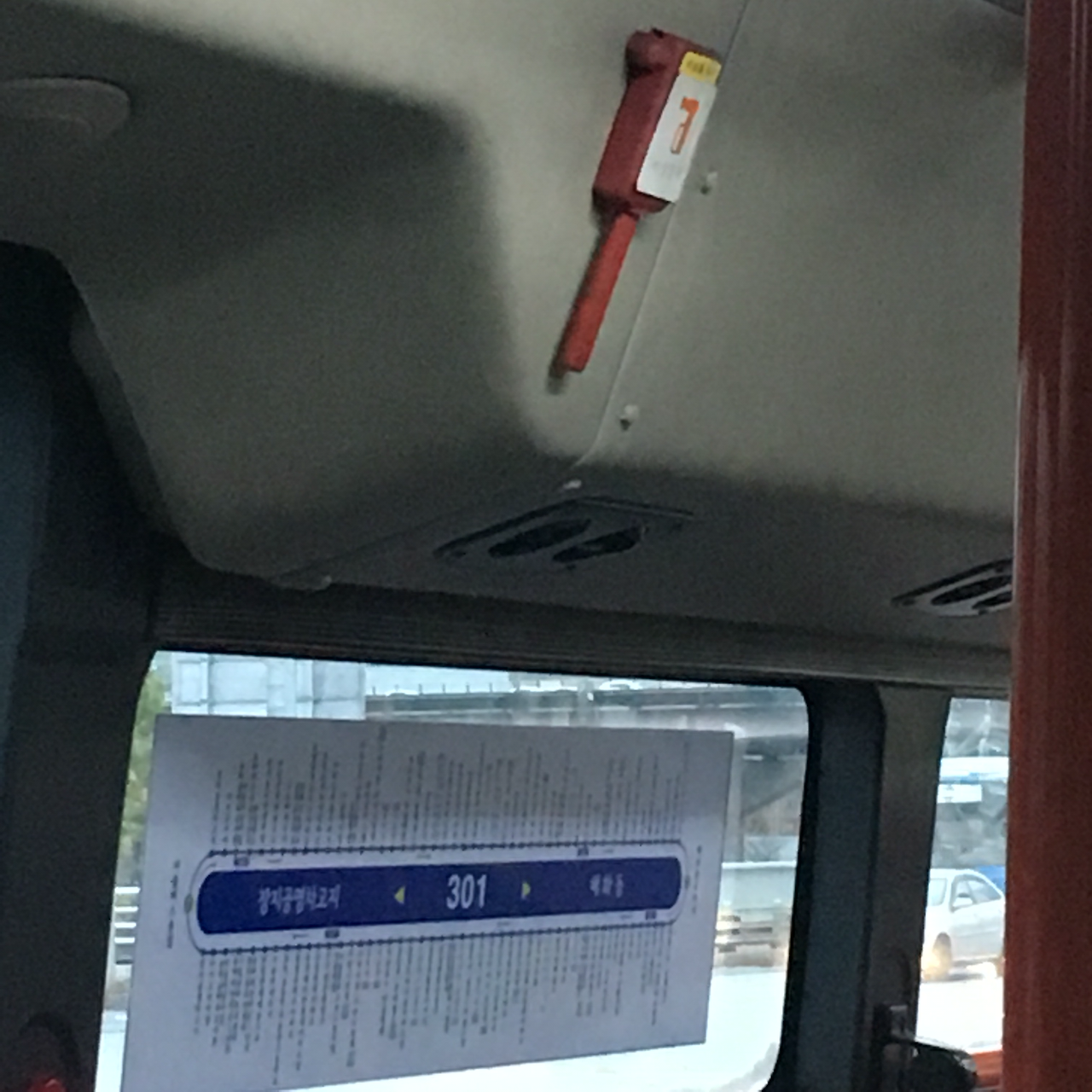 그런데 오늘 내가 탔던 버스에 붙어 있던 비상탈출용 망치는 버스 안의 다른 어떤 요소보다 천장에 가깝게 붙여 있어 사람들의 시야에 가까이 있지 않고 더욱이 키가 작은 분들은 손도 안 닿을 듯한 높이에 붙어 있었다.