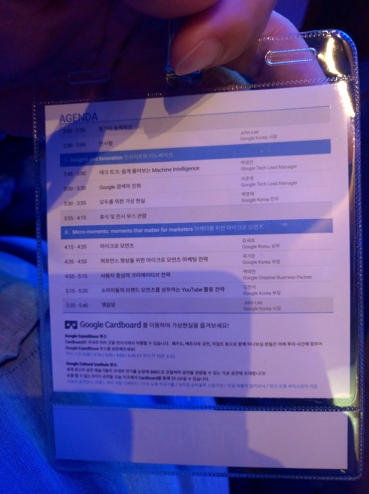 사실 내용 자체가 감명깊을 것도 없었고 실무에 도움이 되는 내용도 없었다. 다만 코엑스에 머무는 내내 내 머리 속에 든 생각은 think 2016 with Google이 맞나? 하는 생각이었다. 내 생각에는 think about Google in 2016이 맞는듯하다. 2016보다는 Google이 중요해보이는 즉 너무 '구글이 대단하다~!'를 보여주고 싶었던거 같은 느낌이었다.