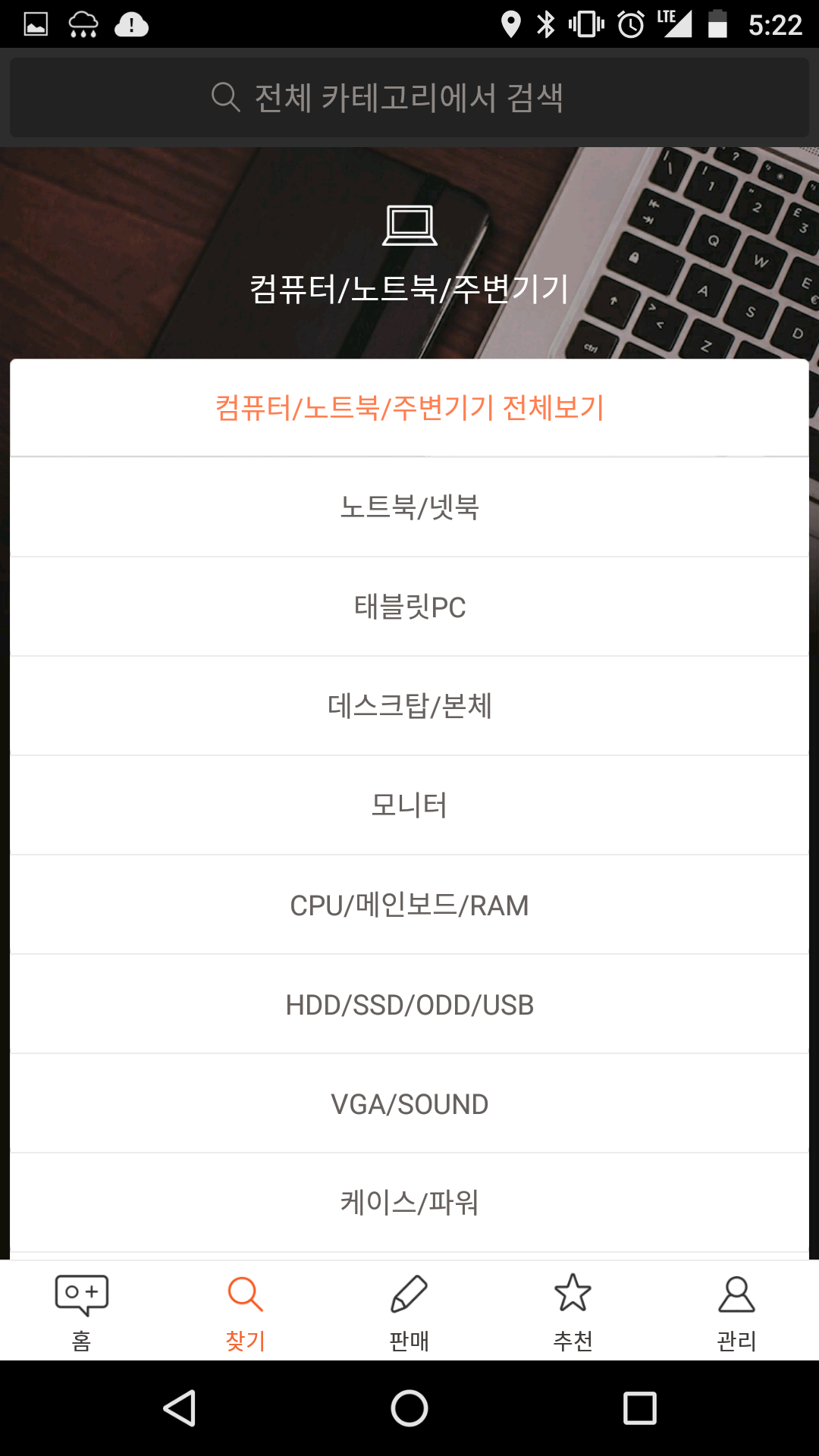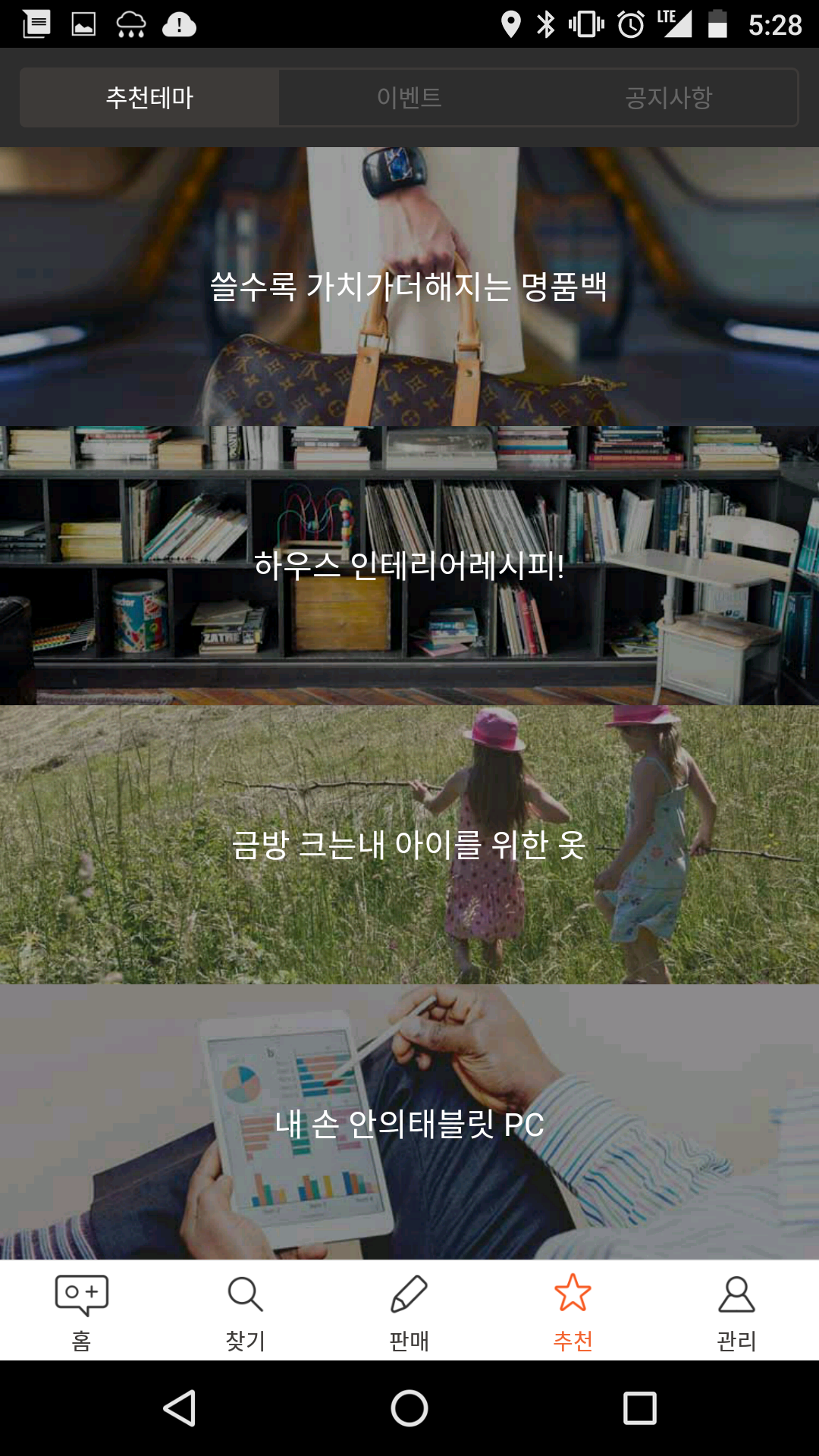 중고나라 앱의 첫 화면은 사실 아래와 같은 화면이다.