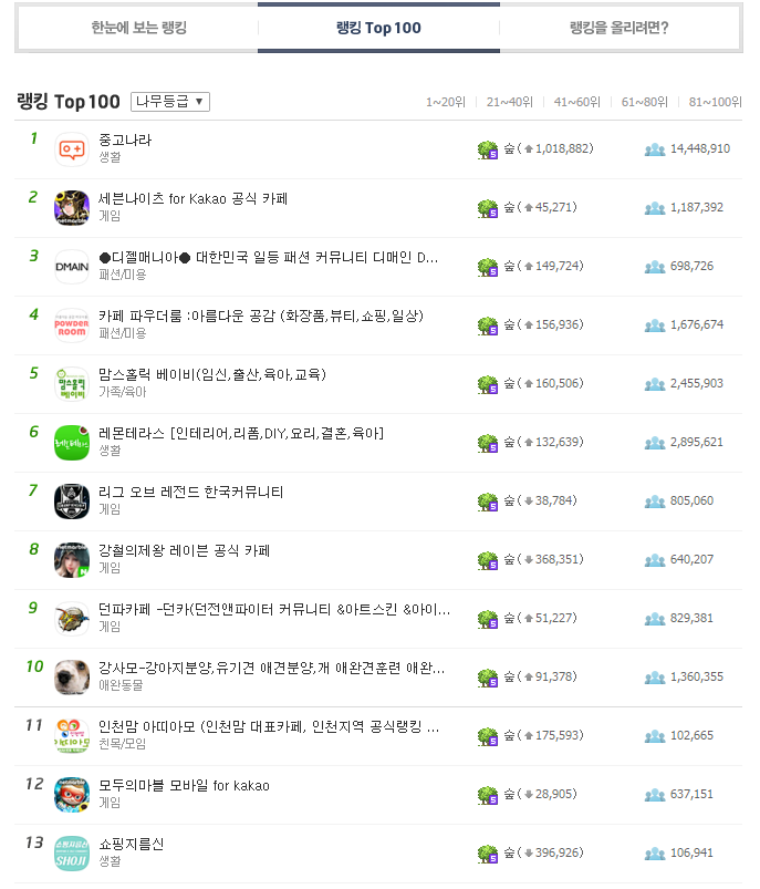 이미 네이버 카페만 하더라도 중고나라 이외에도 디매, 파우더룸, 맘스홀릭, 레테 등 굉장히 규모가 큰 카페들이 많다.