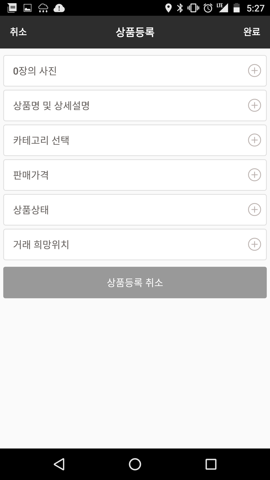 역시 중고나라의 핵심은 상품등록 UI다. 이부분 역시 심플리시티를 극대화하기 위하여 딱 적당한 정보리스트와 선과 텍스트만으로 구성된 심플한 디자인을 보여준다.