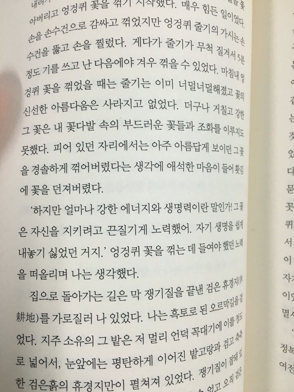 하지만 얼마나 강한 생명력과 힘인가! 그 꽃은 자신을 지키려고 끈질기게 노력했어 자기 생명을 쉽게 내놓기 싫었던 거지.