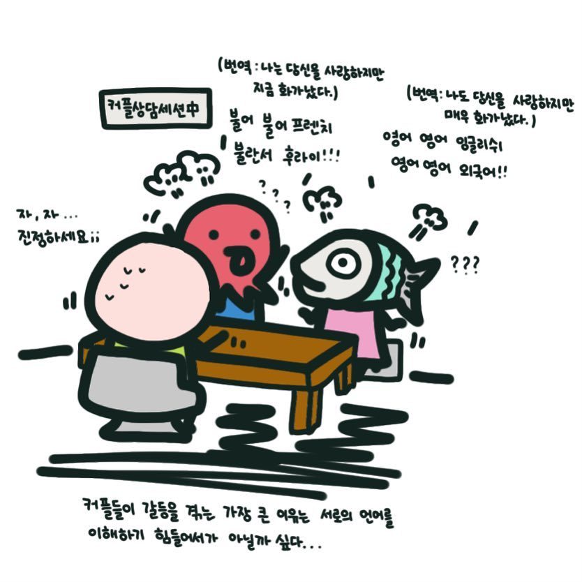 서로를 이해하려 노력하는 것은 어떤 모습일까? 앞서 이야기한 것처럼, 전혀 다른 환경에서 자란 두 사람이 서로를 무조건적으로 이해한다는 것은 불가능하다. (무슨 성인군자도 아니고...) 때문에 이해심을 기르는 것 보다도, 서로의 다름을 인정하는 것이 우선적으로 필요하지 않을까. 오해란 상대방이 가진 뜻을 잘못 이해하거나 잘못 풀이한다는 뜻이라고 사전에 나온다. 그리고 이러한 오해가 생겼을 때 '도대체 이해가 안 된다'는 손가락질보다, '그럴 수도 있구나'라는 호기심을 가지고 포용하는 시선이, 사랑하는 사람 간의 갈등을 해소해가는 첫걸음일 것이다.