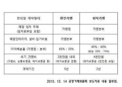 결론부터 말하자면 한국은 현재 완전가맹방식이 주를 이루고 있다. 그 비율이 전체 시장의 70%이상을 이룬다. 편의점 산업이 발달돼있는 대만과 일본을 비교해보자. 물론 한국, 일본, 대만 어느 나라든 각 브랜드마다 계약방식 비중이 상이하지만 대체로 일본의 경우는 30%미만, 대만은 4%에 그친다. 포화된 편의점시장에서 한국 편의점 점주들이 유독 높은 경영 위험에 노출돼있는 것이다.
