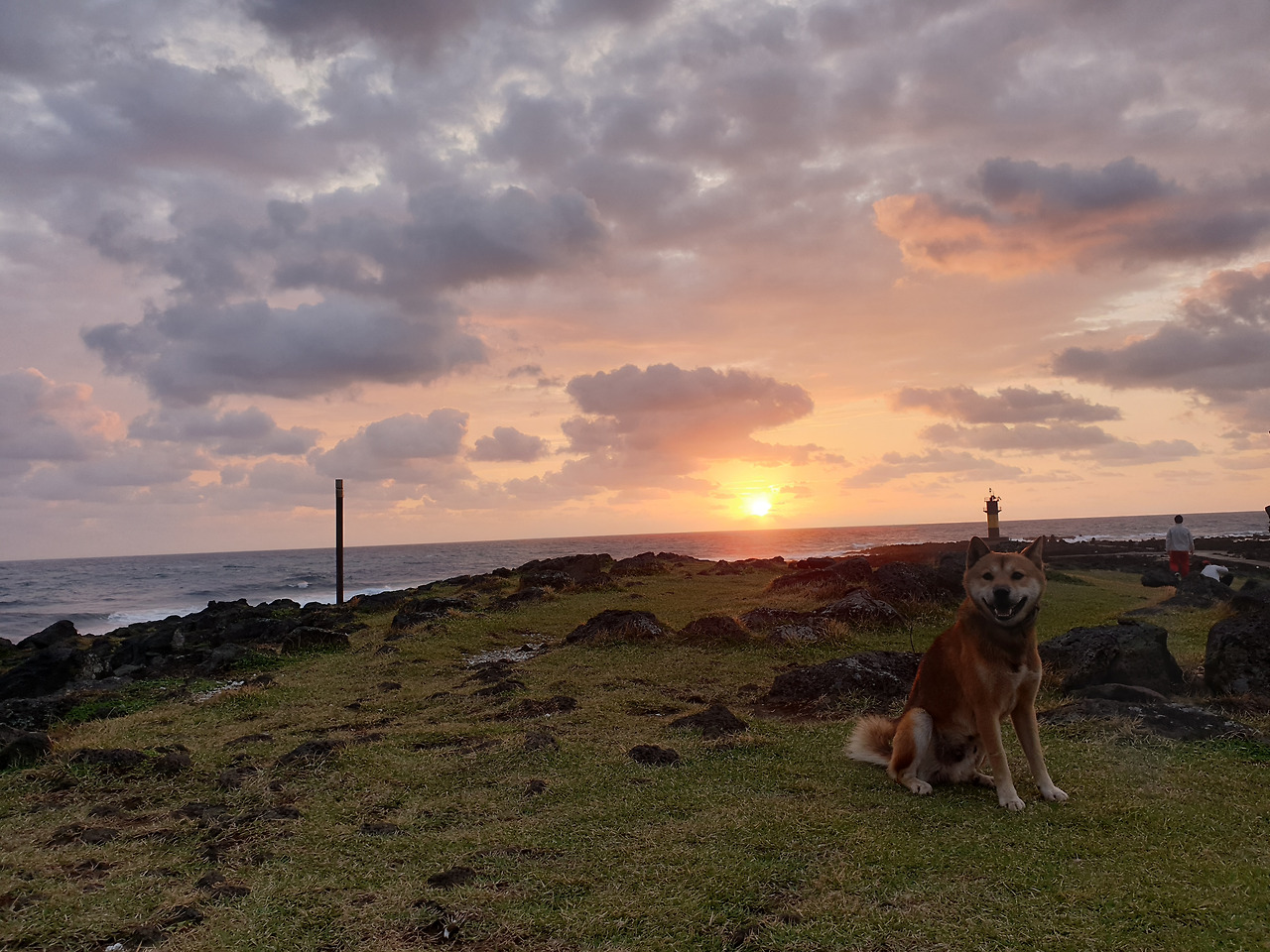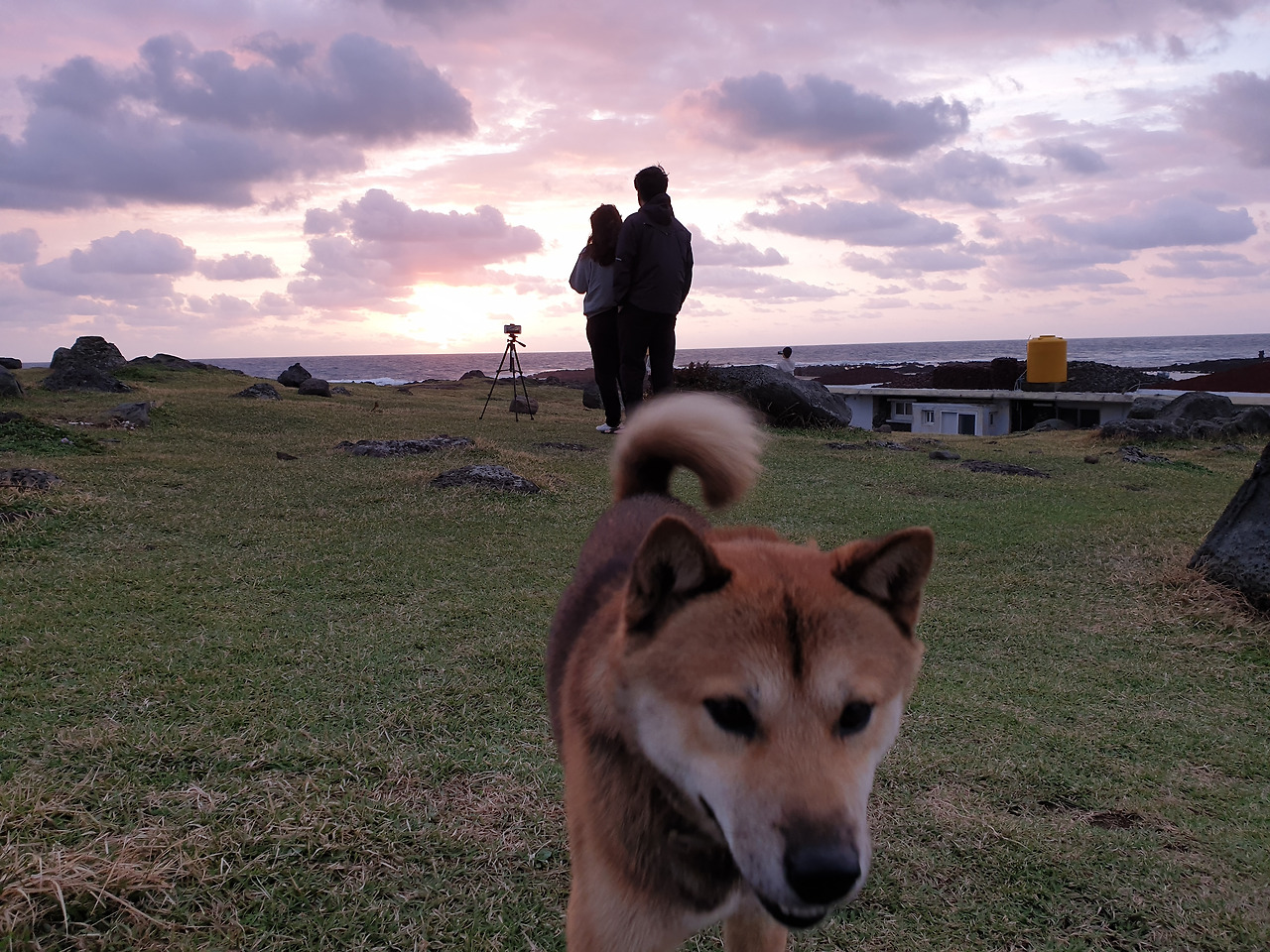제주도 동쪽 끝에서 바라본 일출은 참!기가막혔다. 아침일찍 간식달라고 졸졸 따라다니던 황구 참 귀엽다.