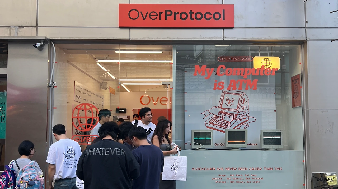 9월에는 모베러웍스와 협업하여 성수동에서 팝업스토어도 열었었다. 누구나 자신의 컴퓨터에서 노드를 운영하고 수수료 수익을 획득하여 사용할 수 있다는 것을 경험시켜 주기 위함이었다. 아직 오버프로토콜 출시 전이기 때문에 오버월렛의 포인트로 결제하는 경험을 제공했고, 포인트를 사용하고 싶도록 하기 위해 매력적인 굿즈를 제작하고 크림과 협업하여 래플도 진행했다. 팝업스토어에는 하루 300명씩 4일 동안 1,200명이 방문했는데, 우리의 유저들을 직접 대면하고 의견을 들을 수 있는 소중한 기회였다.