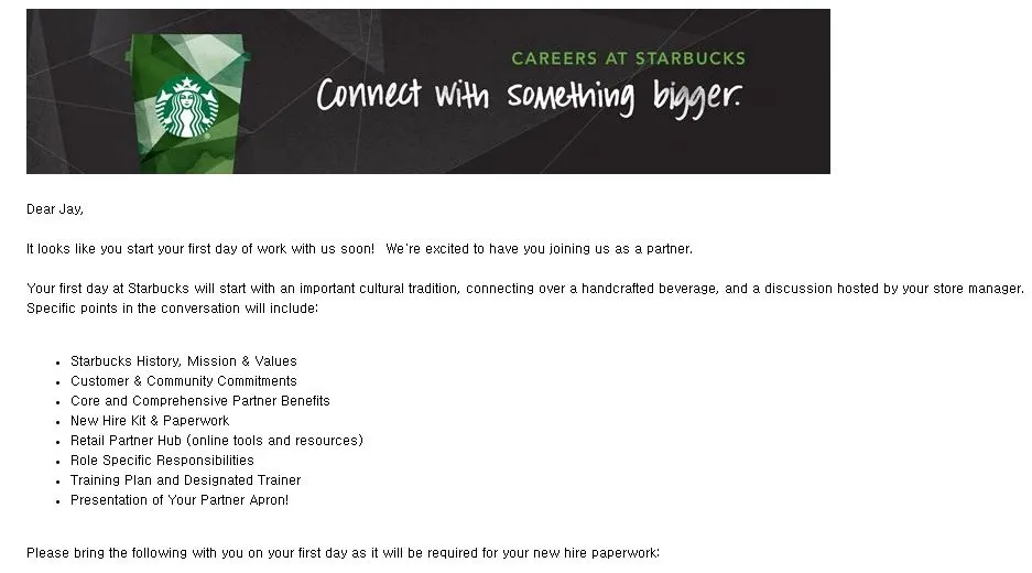 캐나다 스타벅스 오퍼 레터(Offer Letter)
