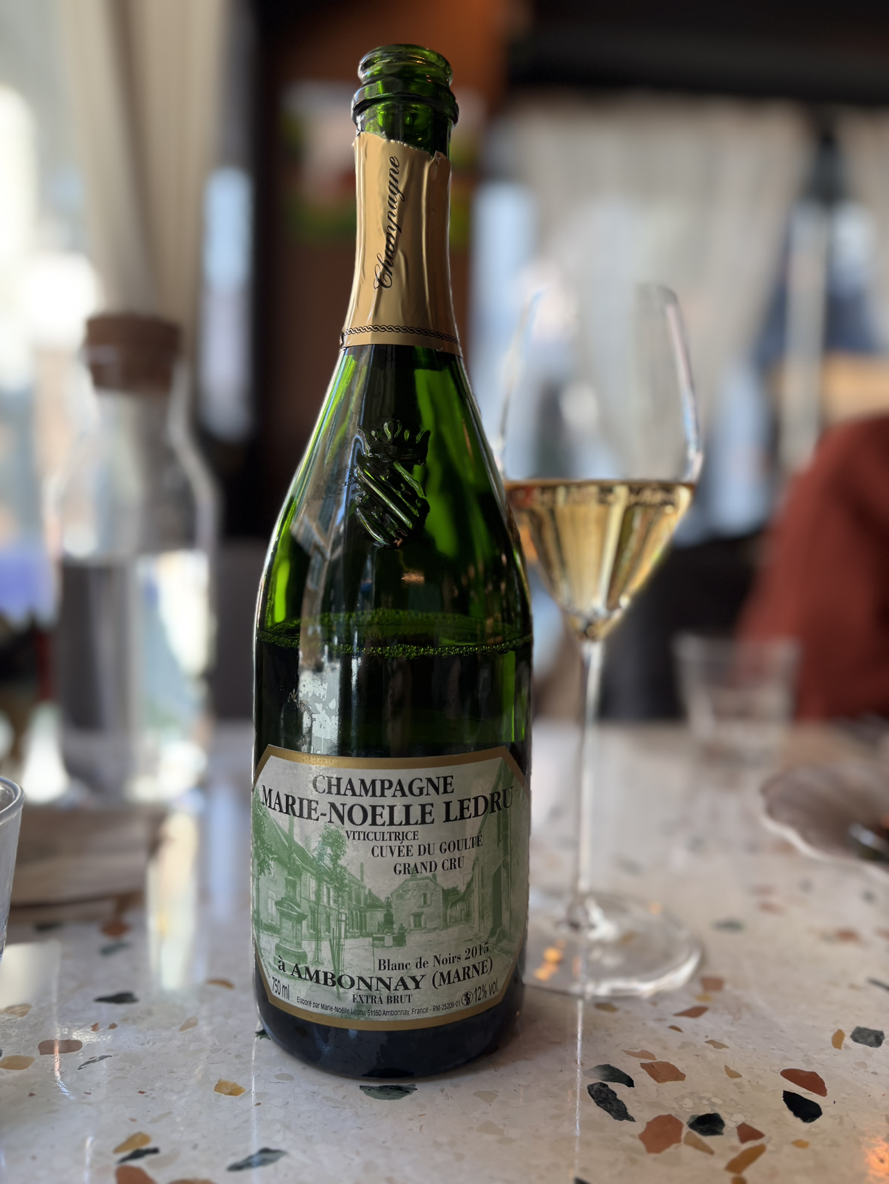 이 샴페인은 프랑스 샴페인 지역 Montagne de Reims의 Ambonnay 그랑 크뤼 마을에서 생산되며, 유기농법을 실천하고, 낮은 수확량을 유지해 포도 품질 극대화한다고 합니다. 생산량이 적기도 했지만, 생산자인 Marie-Noelle Ledru의 은퇴 이후로 더욱 구하기 힘들어진 귀한 샴페인이래요.