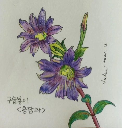 으름 못지않게 올봄에 처음 발견한 꽃이 또 있다. 바로 구슬봉이다. 잡풀 더미 속에서 범상치 않은 빛이 있어 덤불을 헤쳐보니 꽃이다. 처음엔 백두산 천지나 한라산 백록담 근처에 난다는 그 용담인 줄 알았다. 에이, 백두산이 아닌데....가슴이 두근거린다. 청색을 품은 보랏빛이 고고했다. 남편이 찾아보더니 용담과에 속하는 구슬봉이라고 한다. 한참을 꽃 앞에 서서 바라보았다. 이 숲에 구슬봉이가 있을 줄이야! 더러 자생하고 있었겠지만 귀한 모습때문에 사람들 손을 탔겠지. 그래서 개체수가 적은 거라며 남편이 혀를 찬다. 벌이나 나비에게만 그 모습이 드러나기를 바라면서 덤불을 다시 슬쩍 덮어주고 돌아섰다.