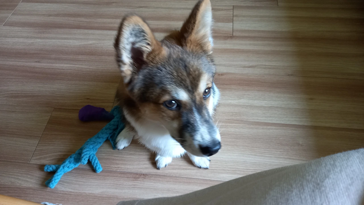 거실을 이리저리 가로지르며 뛰다가 물을 마시나보다. 그리곤 깡패처럼 두 발로 안방 문을 텅하니 차고 들어와 침대 아래서 말없이 나를 올려다본다. 못 본 척하는 나. 각종 장난감을 물고 와 바닥에 놓는다. 또 외면. 장난감 하나를 물고 슥~나가더니 저렇게 뛰어다닌다. 음.... 저건 시위다.
