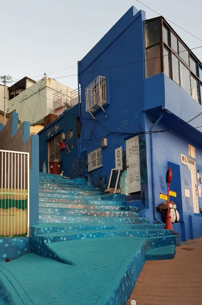 부산여행을 간 남편은 역시나 여러 장의 사진을 보내주었다. 그중 파란색의 건물과 계단을 찍은 사진이 예뻤다. 내가 파란색에 특히 끌리는 경향이 있다는 것을 알고 보낸 것일까. 평범하고 남루한 일상의 공간을 이렇게 꾸민 것은 그 지역 사람들의 꿈이 담긴 것이다. 꿈으로 만들어내는 풍경은 좀 다르다. 파버 카스텔보다 발색이 편한 프리즈마가 낫겠다. 색을 칠하느라 시간이 꽤 걸렸다. 그림을 끝내고 보니 새벽 2시.