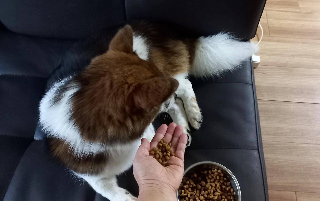 맛있는 사료까지 새로 사다가 섞어주었는데도 고개를 돌리고 먹지 않는다. 머선 일이고