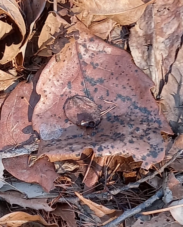 나뭇잎에 커다란 물방울이 언 채로 맺혀있다