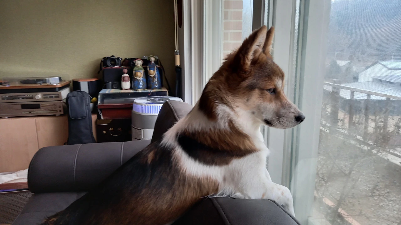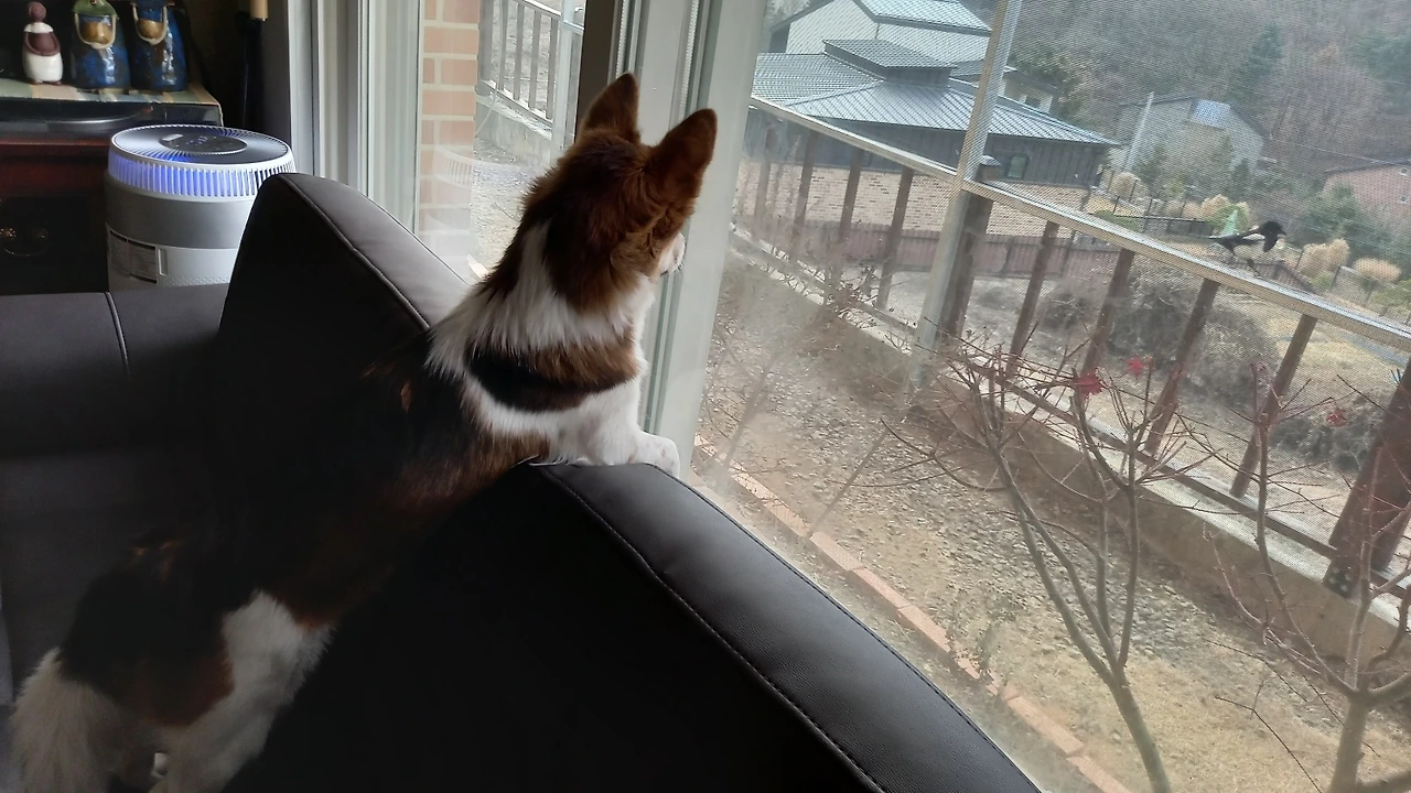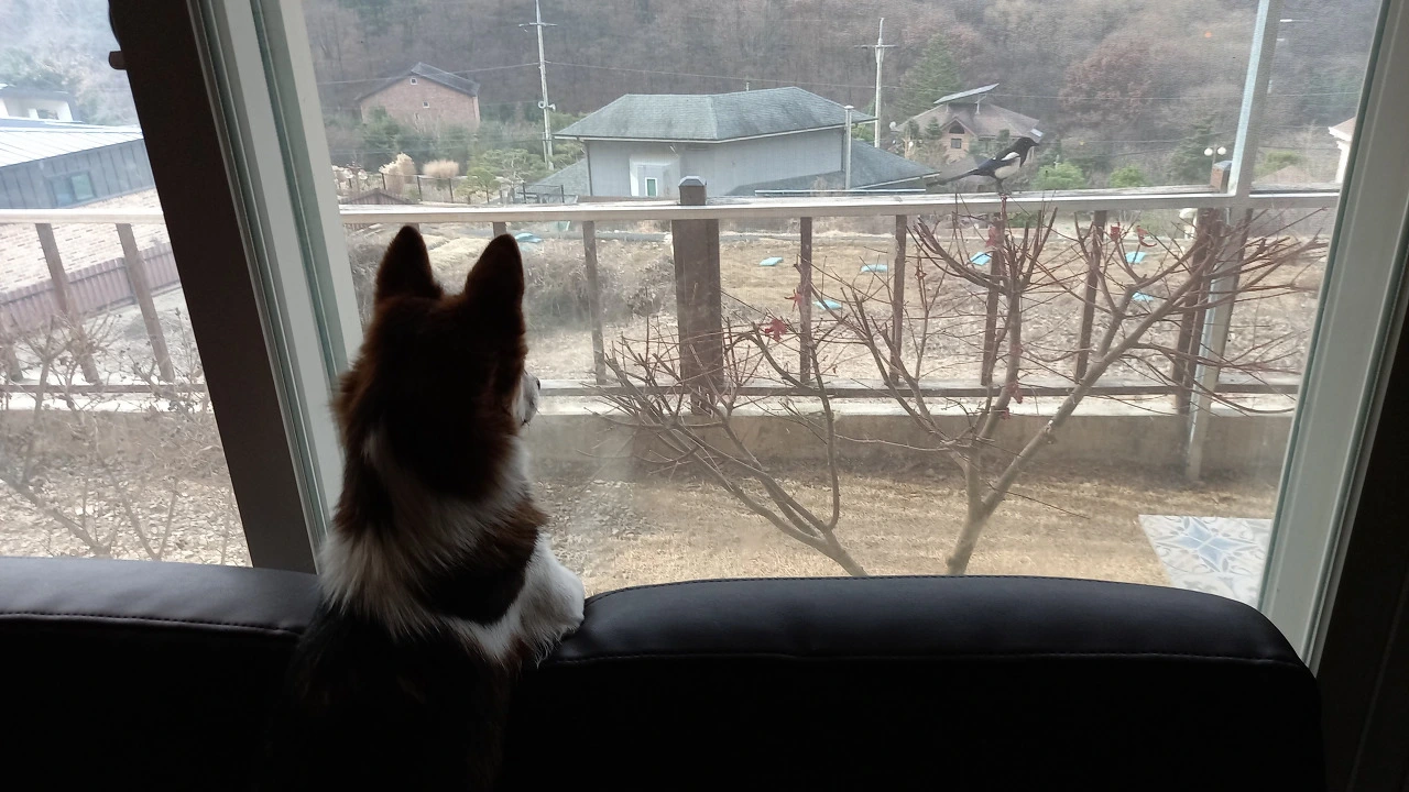 투투가 창밖을 내다보기 시작한다. 공놀이도 시들해지고 엄마도 제 할 일만 한다. 밖을 내다보던 투투 움찔한다. 눈동자가 빠르게 움직이고 코끝이 쉴 새 없이 꼬물거린다. 뭐지? 까치구나. 펜스에 까치가 놀러 왔다. 가끔 까마귀가 올 때도 있는데 까치는 자주 온다. 통통통 거리며 펜스 위를 왔다 갔다 한다. 투투 눈에서 레이저가 나올 것 같다. 마당에 있던 탱이가 어슬렁 거리며 까치 있는 곳으로 다가오자 까치는 후루룩 날아갔다. 온 몸의 근육을 팽팽히 당기고 있던 투투가 후~하고 한숨을 쉰다.