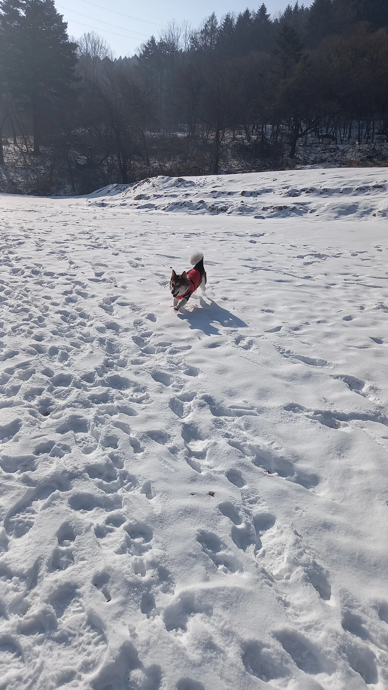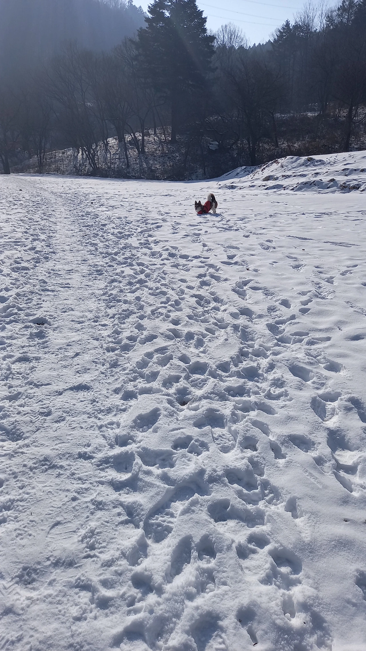 날씨가 모처럼 따뜻해서 숲으로 갔다. 산길에 접어드니 마치 오늘 아침에 내린 듯 쌓인 눈들이 그대로다. 집에만 있던 투투는 모처럼 실컷 뛰었다. 밀린 운동을 하려는지 투투의 뜀박질이 왕성하다. 달리는 투투 주변에 눈이 하얗게 날린다. 투투는 지금 아드레날린 폭발하는 십 대다.