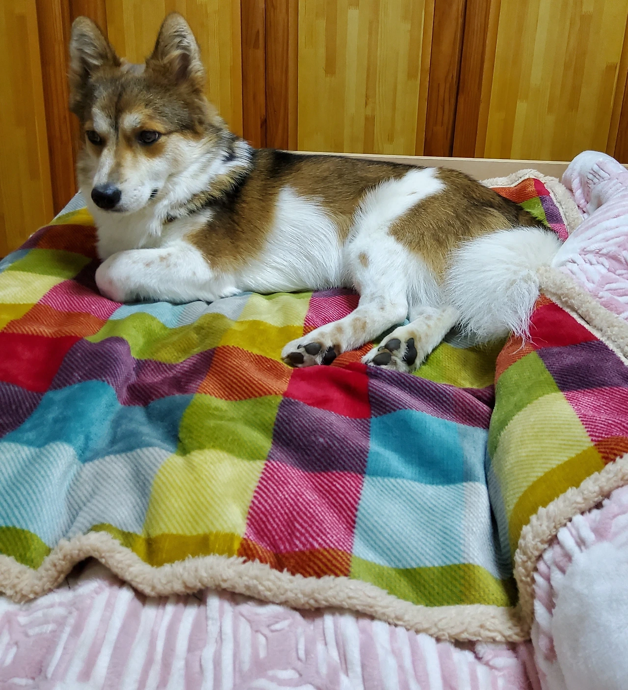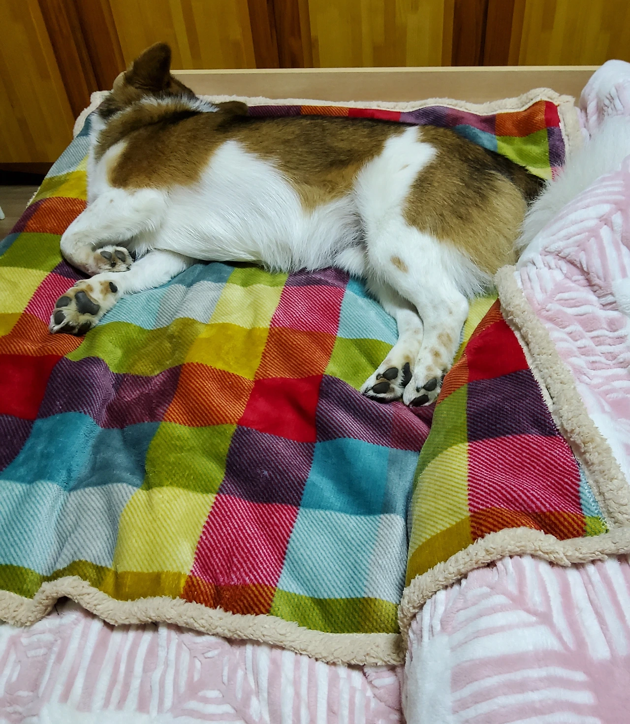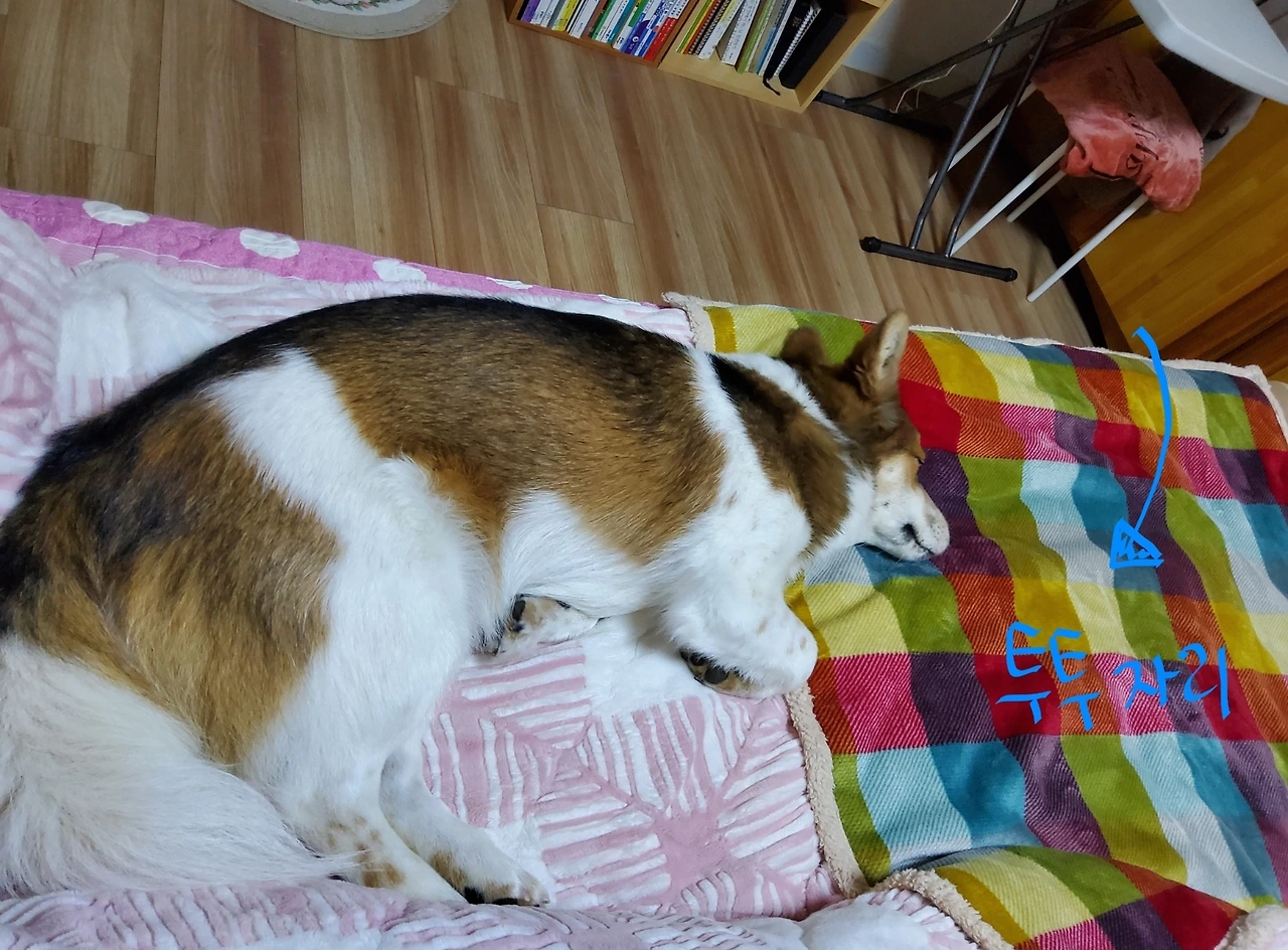 투투자리는 저 알록달록한 담요 위다. 녀석이 어느 날부터 침대로 올라와 자기 시작하더니 이젠 침대가 제 자리다. 덕분에 녀석이 눕는이불 한 귀퉁이가 눈에 띄게 꼬질꼬질해졌다. 궁리하다가 담요를 붙여 놓았더니 그 자리가 제 자리인 줄 알고 꼭 그곳에서 잔다. 이젠 나보다 먼저 올라가 자리를 잡는다.
