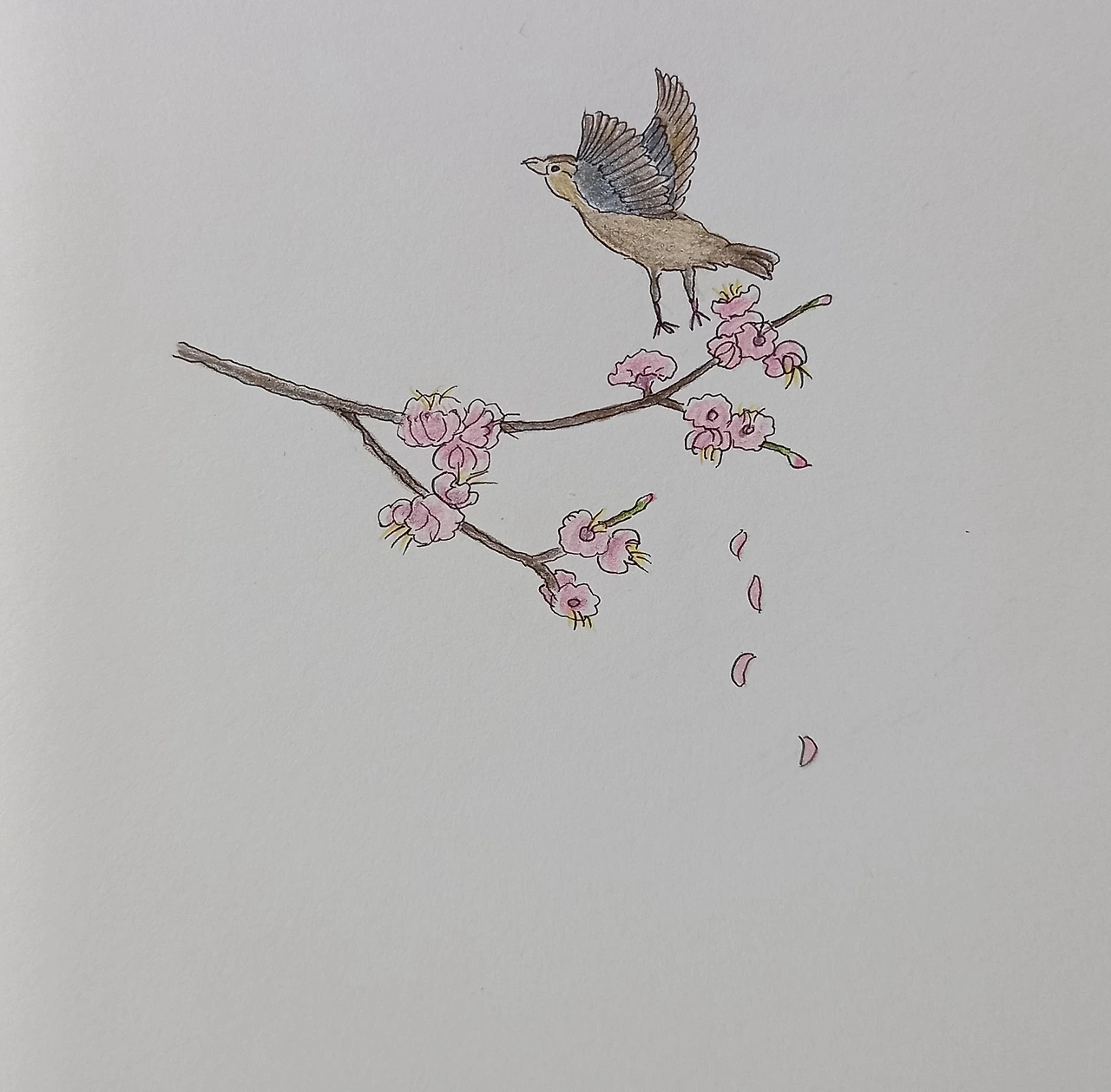 참새가 앉았었나 보다. 참새는 앉아 있던 꽃가지에 그 무게를 남기고 날아갔다. 참새의 무게도 감당하지 못해서 출렁이는 걸 보니 꽃가지는 여리고 가늘다. 꽃가지의 출렁임은 참새처럼 연약한 우리 실존의 무게가 아닐까. 참새는 가지에 앉지만 머물지 않고 꽃가지는 출렁거릴 뿐 부러지지 않는다.