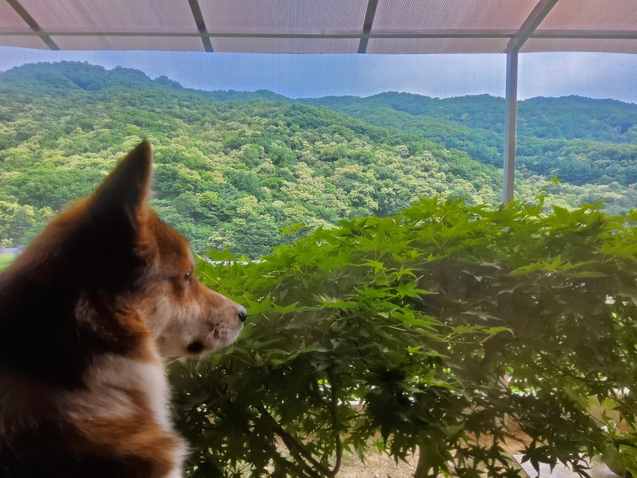 한바탕 비가 쏟아지니 앞산의 초록이 더 푸르다. 진한 초록의 녹음을 이루는 산은 그 빛깔만큼의 깊이가 느껴진다. 그 깊이는 때로 심연 같아 가늠할 수 없는 공간이 되기도 하고 어느 철학자의 어두운 슬픔 같기도 하고 알 수 없는 어떤 이의 속내 같기도 하다. 내가 보는 그런 풍경을 투투는 어떤 눈으로 바라보는 것일까. 내가 정의한 그 시선에 갇혀 바라보는 나와 달리 바깥을 내다보는 투투의 길고 먼 눈동자엔 어떤 것도 의도한 바 없이 그저 바라보는 것 같다. 생각과 감각을 배제한 바라봄이 온전한 '멍'이 아닐까.