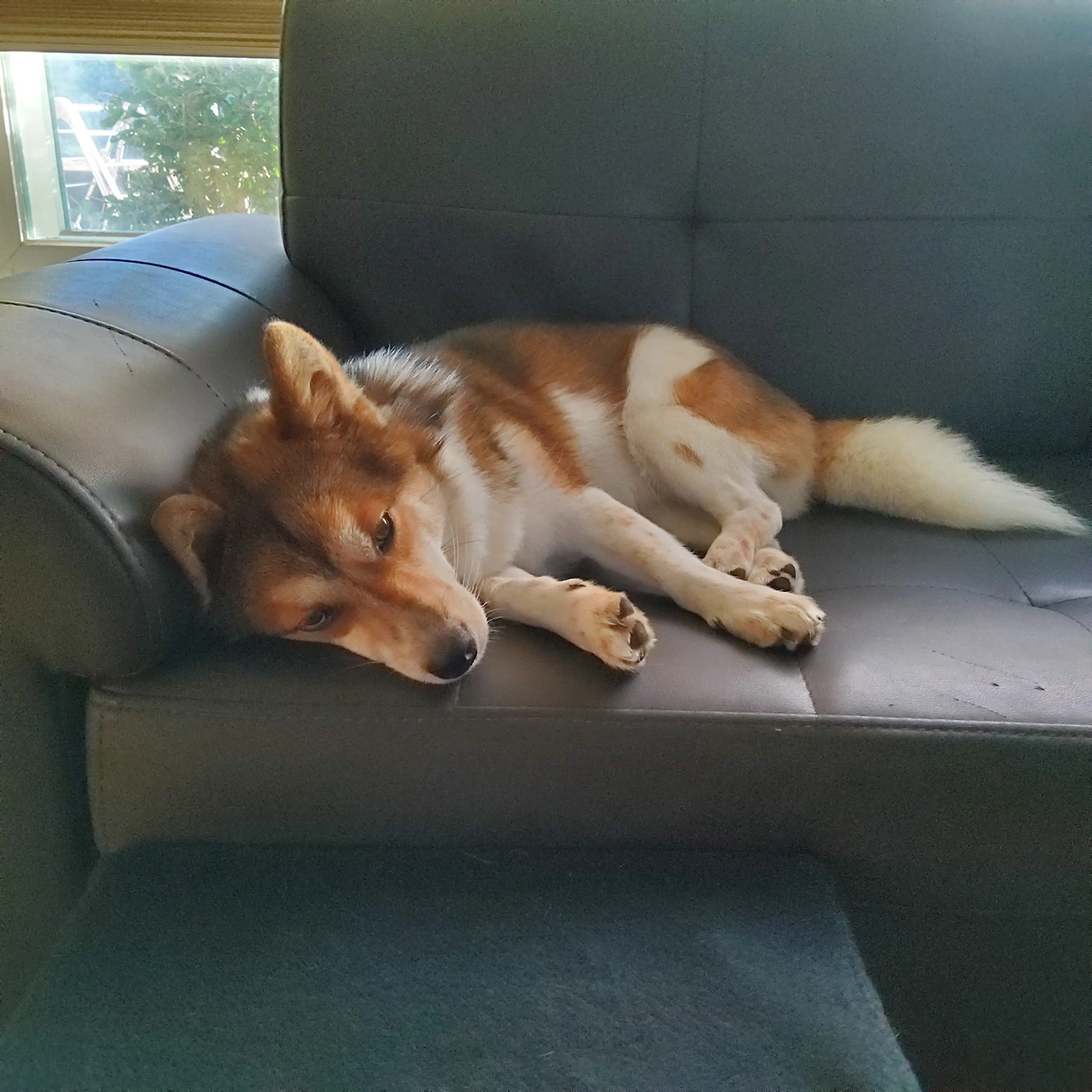 볼일보고 들어와 또 누웠다. 공을 던져줘도 관심 없는투투.