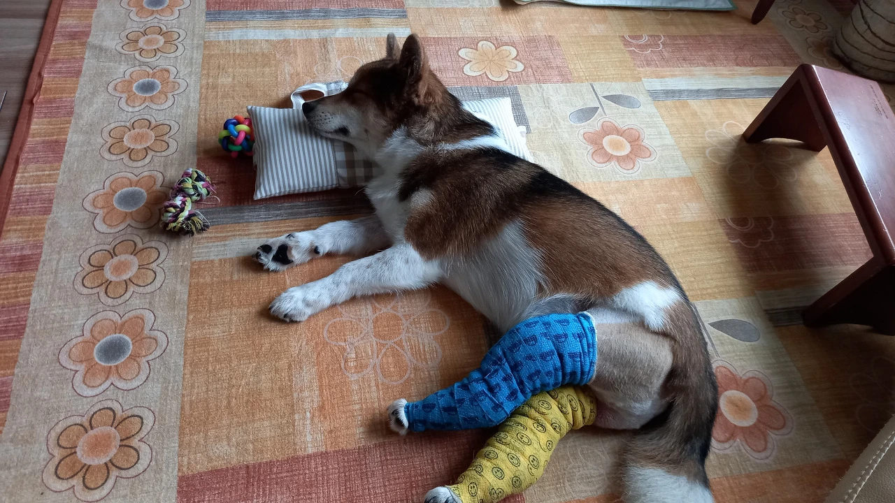 수술 다음 날 병원에 가니 의료진들이 투투 앞에 모여있다. 무슨 일이지? 또 가슴이 철렁했다. 치료를 하고 엑스레이를 찍어야 하는데 투투가 근처에도 오지 못하게 으르렁대고 있었다. 의료진은 투투를 만질 수 없어서 난감해했다.의사가 반색을 하며 엄마가 꺼내서 옮겨달란다. 투투를 보니 한쪽 눈의 실핏줄이 터져 빨갛고 두 뒷다리엔 깁스를 해 놓았다. 마취에서 깬 투투가 사납게 성질을 부린 통에 눈의 핏줄이 터진 거란다. 그 모습이 처참해 또 눈물이 났다. 엄마를 본 투투는 꼬리를 흔들며 참았던 오줌도 누고 순하게 치료를 받았다. 의사가 그런 투투를 보고 억울하다고 말해서 울다가 웃었다.